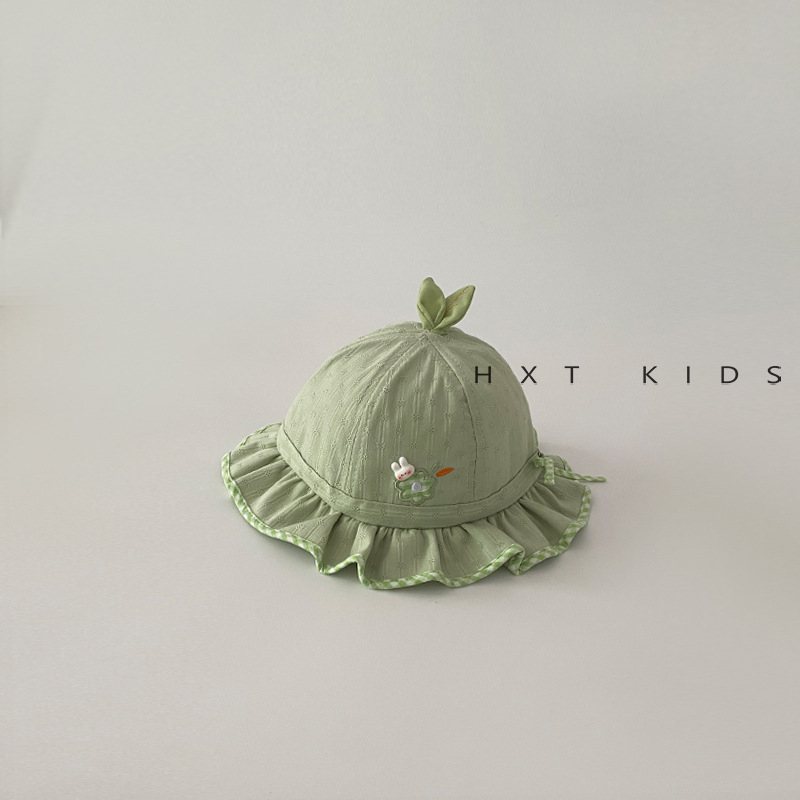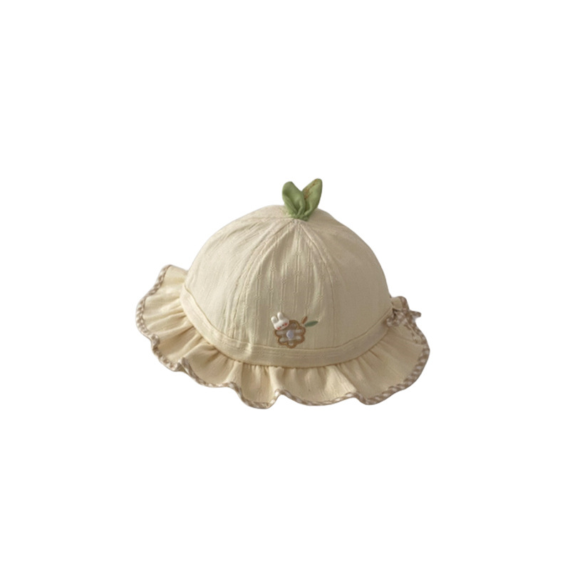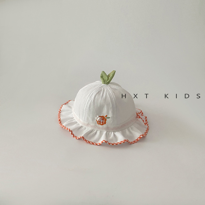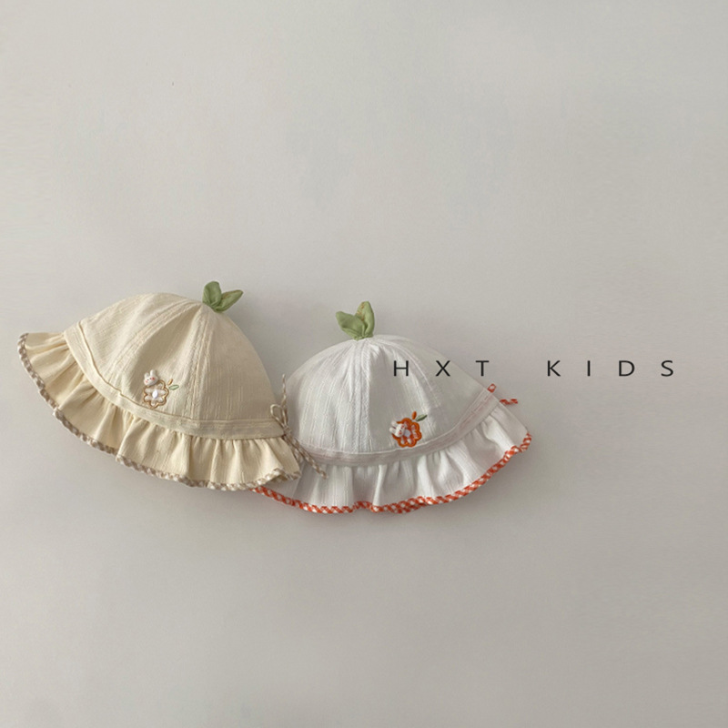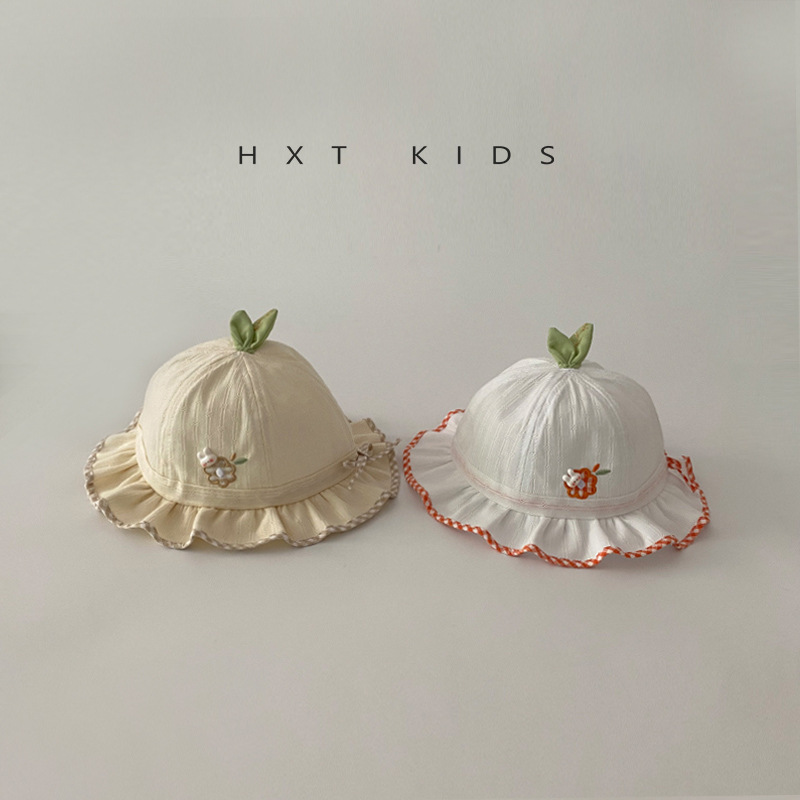 婴儿帽子春秋季小花刺绣花边遮阳盆帽3个月婴幼儿宝宝韩版防晒帽6