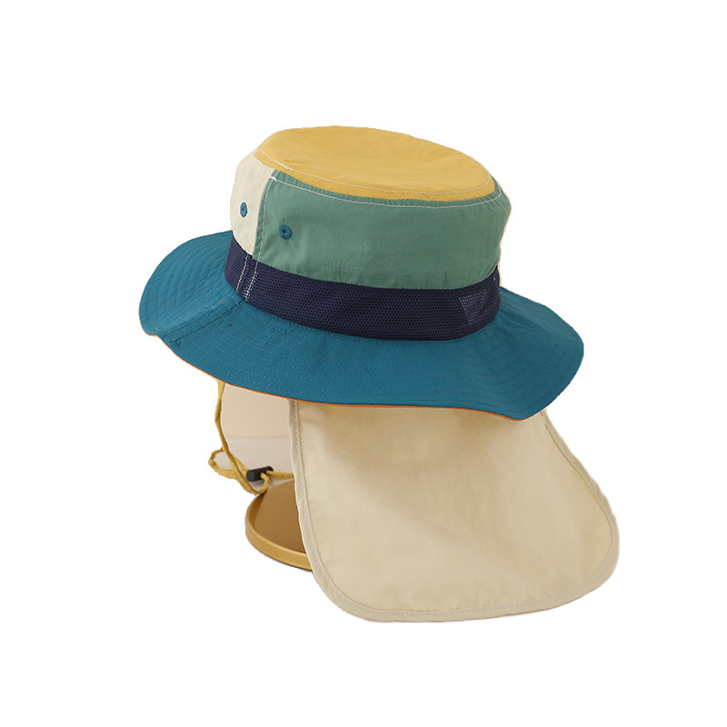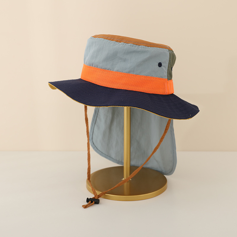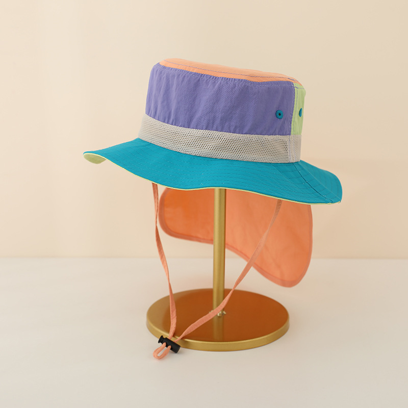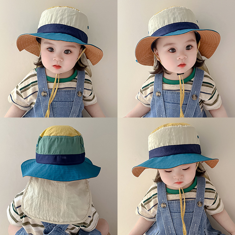 韩版拼色儿童防晒帽夏季薄款透气遮阳护脖帽男女宝宝出游渔夫帽潮