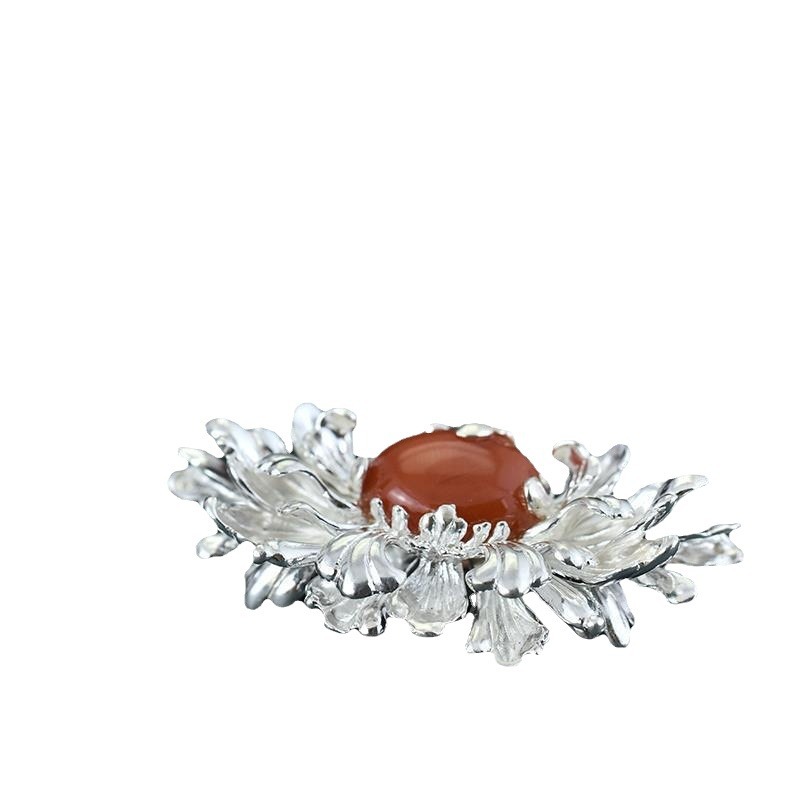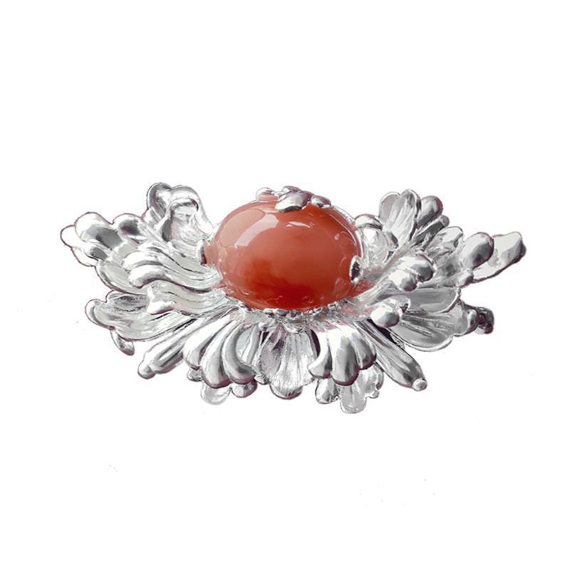 新款民族风设计纯银胸针个性古典旗袍扣镀白金色丝巾扣高档女奢华
