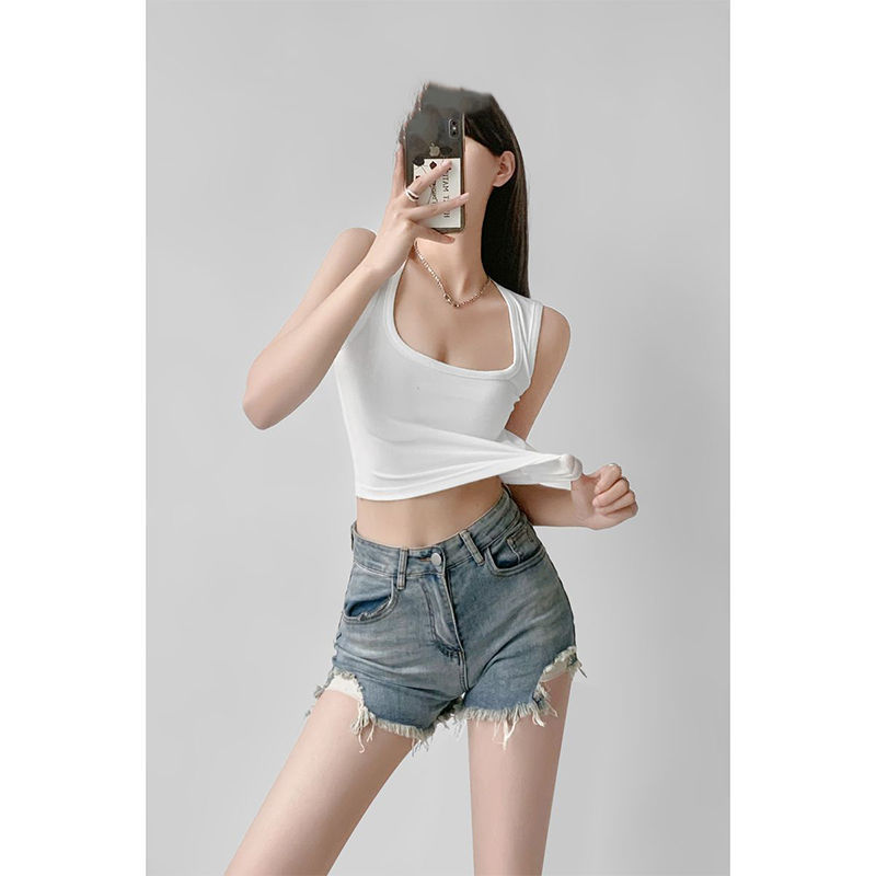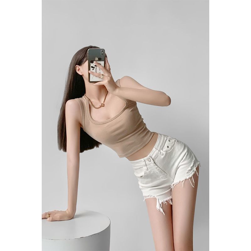 设计感潮品欧美风新款修身显瘦辣妹短款方领无袖背心内搭上衣女