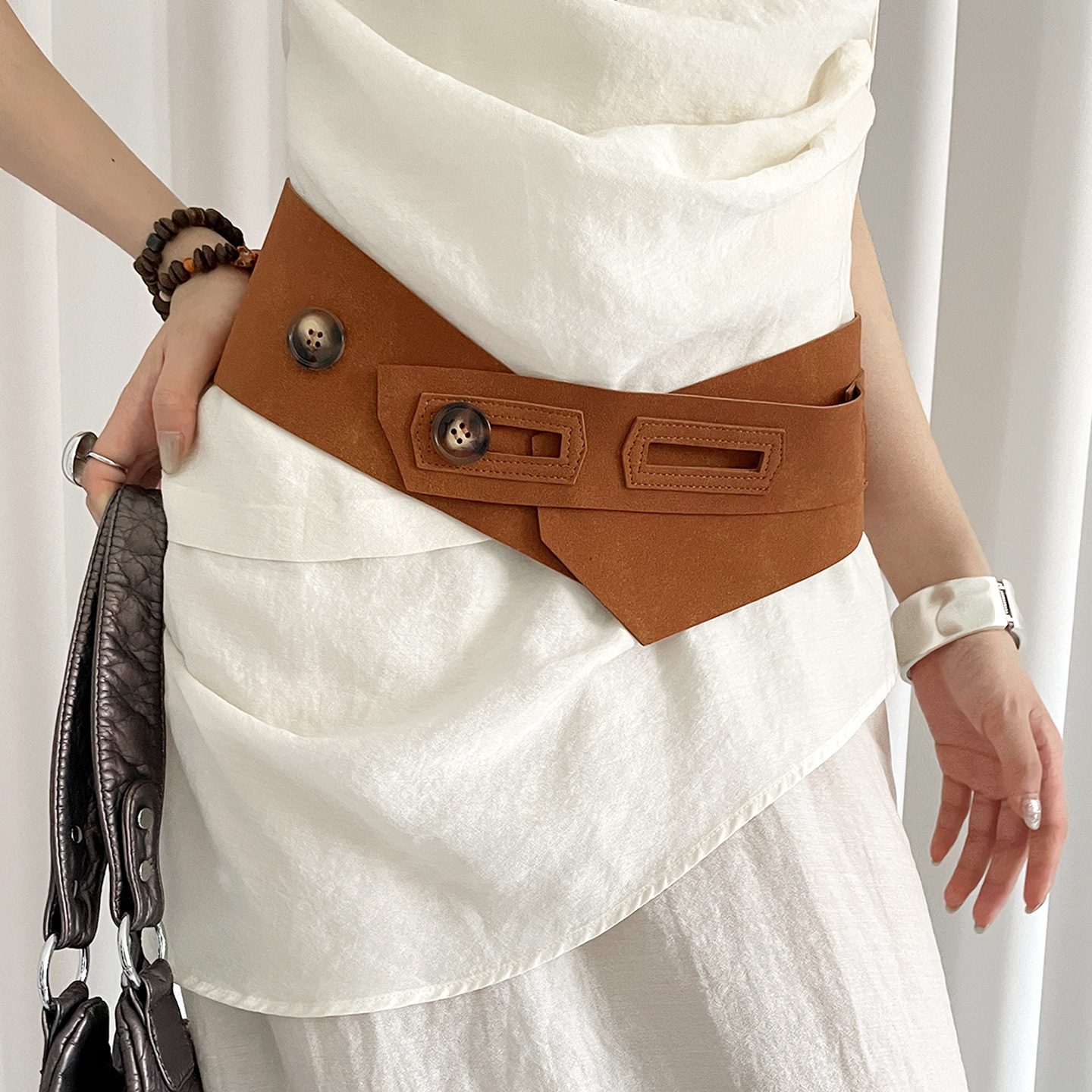 复古高级感西部风宽腰带女麂皮绒面收腰配连衣裙子腰封百搭皮带潮