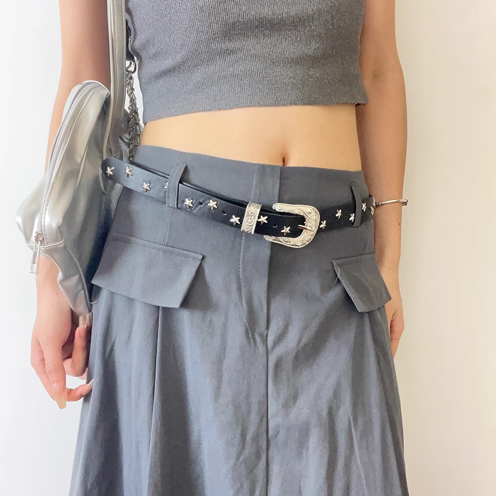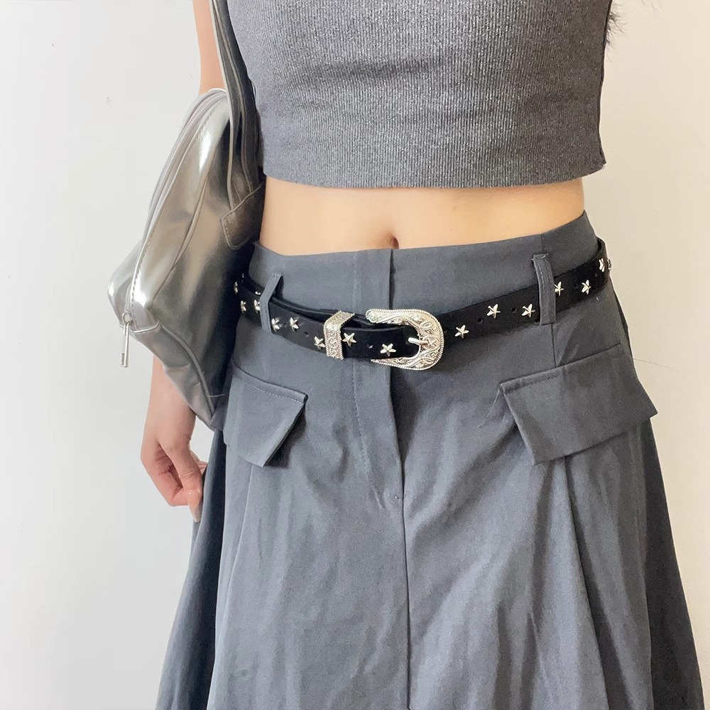 美式复古五角星女式腰带女百搭高级感皮带新款小众设计感配饰