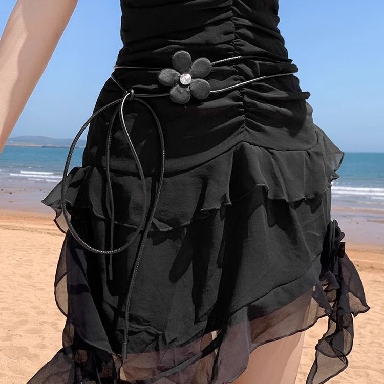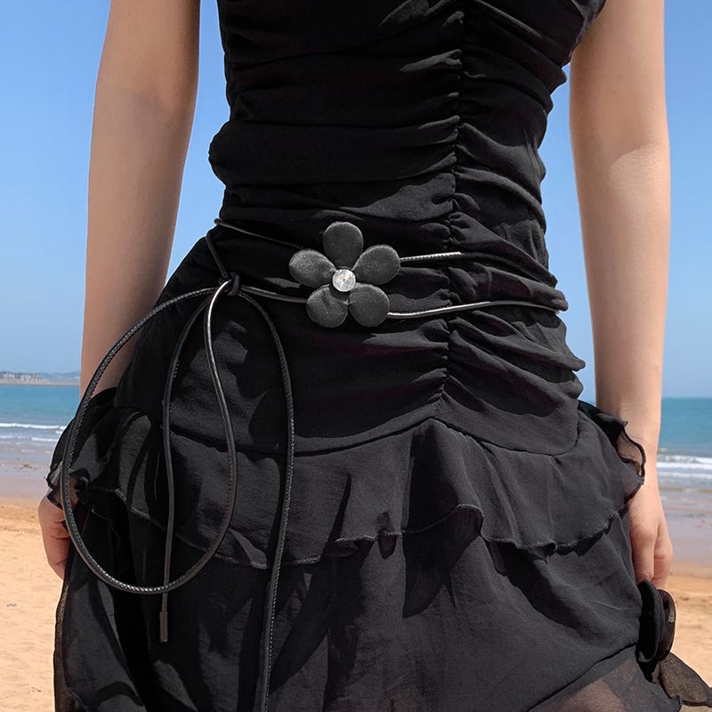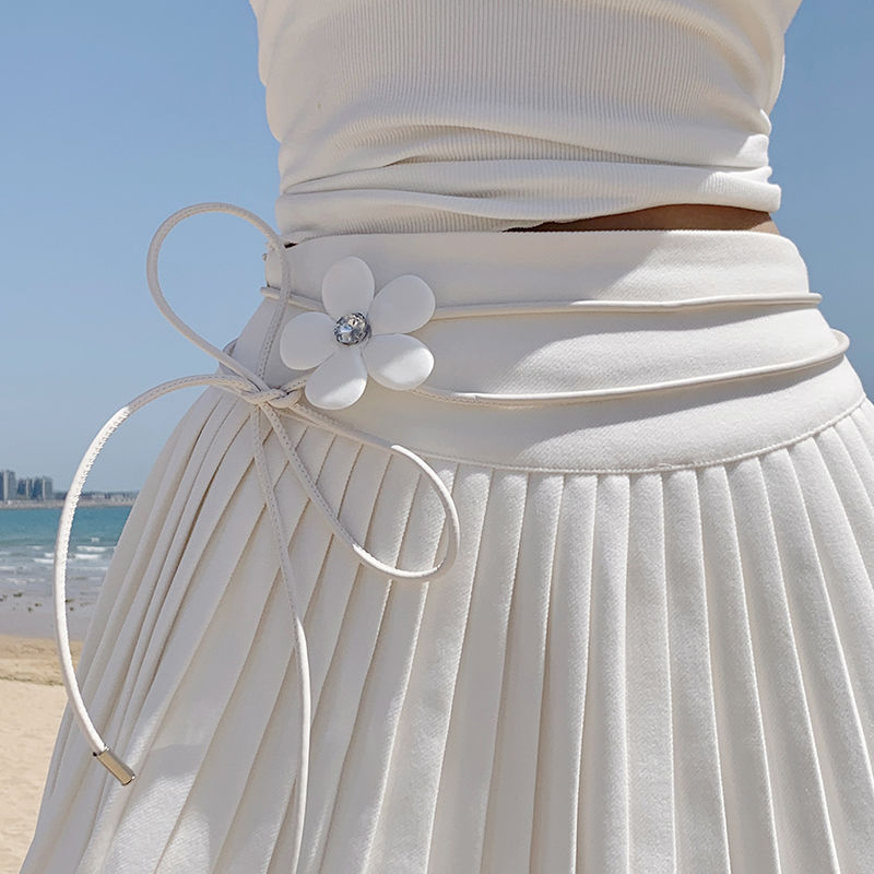 花朵细皮绳腰链女款配连衣裙子白色腰绳百搭新款衬衫装饰腰带