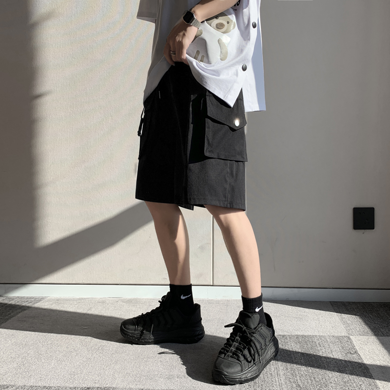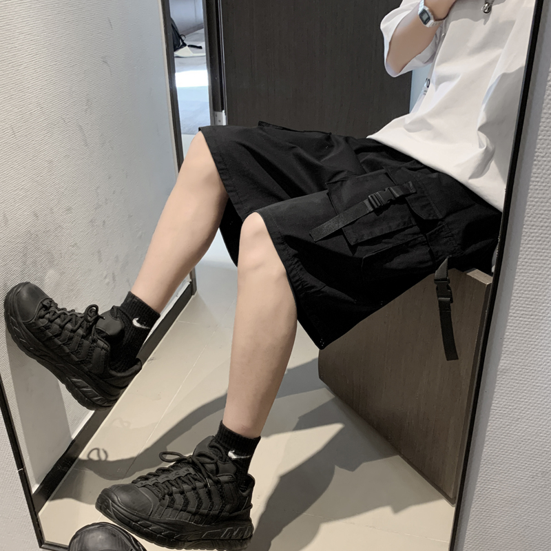 港风嘻哈工装短裤男潮牌夏季百搭五分裤韩版个性大口袋直筒裤