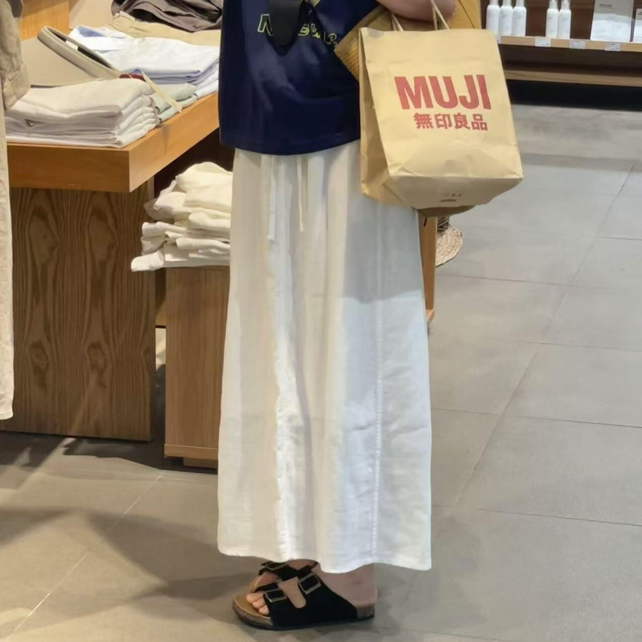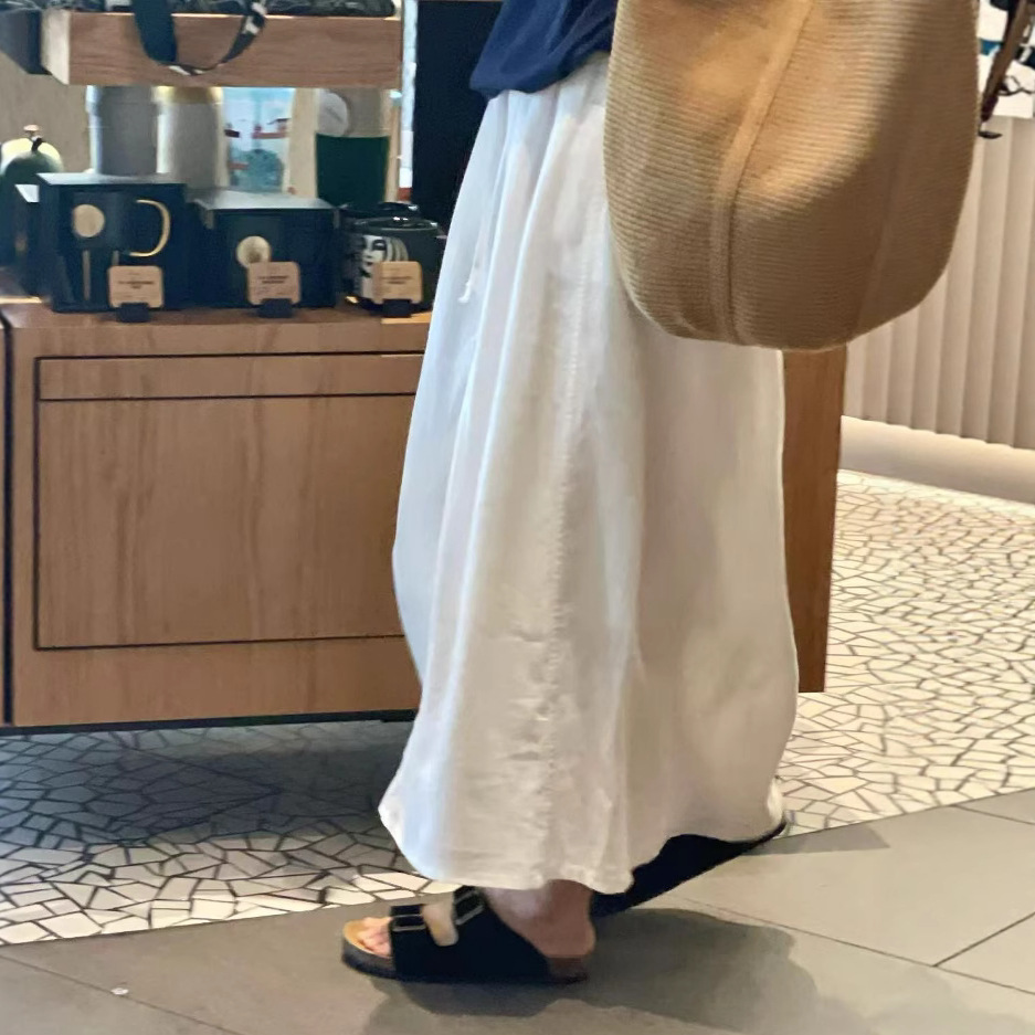 夏季慵懒风白色半裙 小众设计感舒适百搭裙子