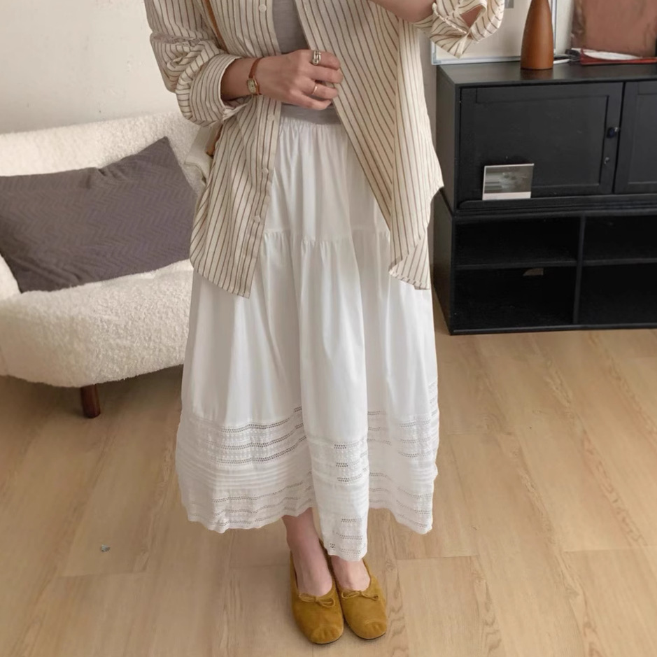 高腰半身裙女春秋季新款优雅双层花边蓬松蛋糕裙子