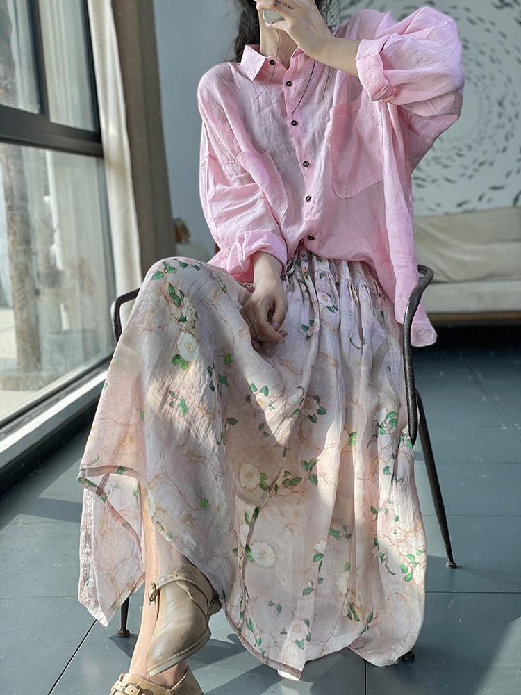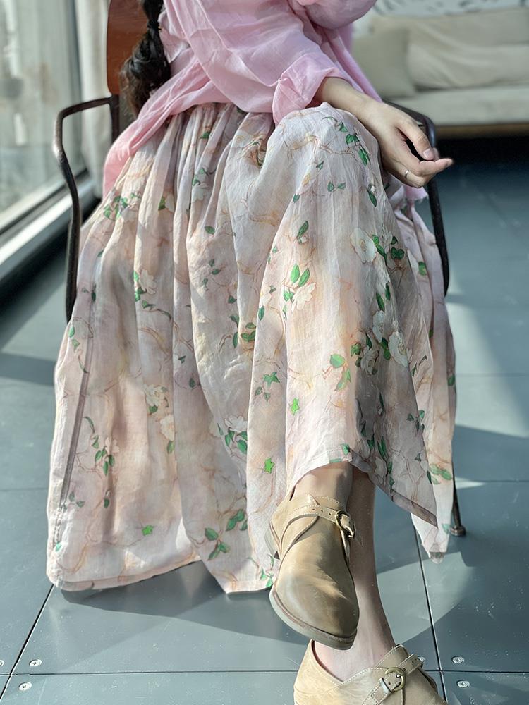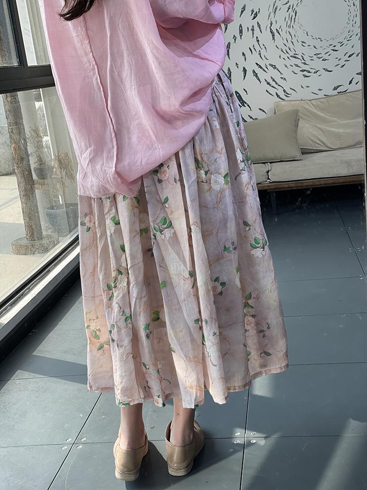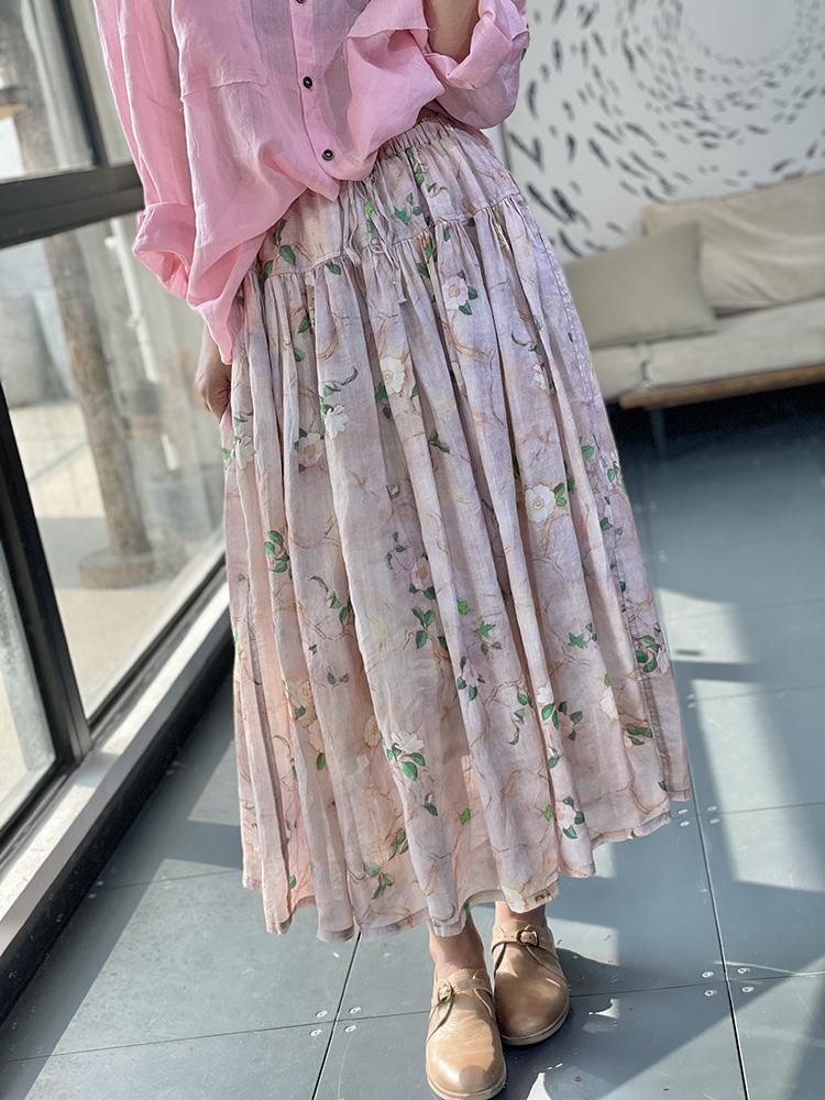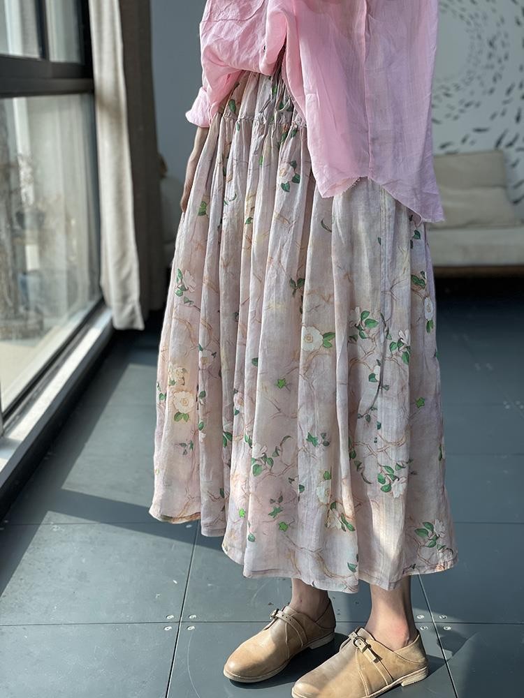 夏季文艺减龄气质皱褶A字裙宽松大摆飘逸碎花半身裙女