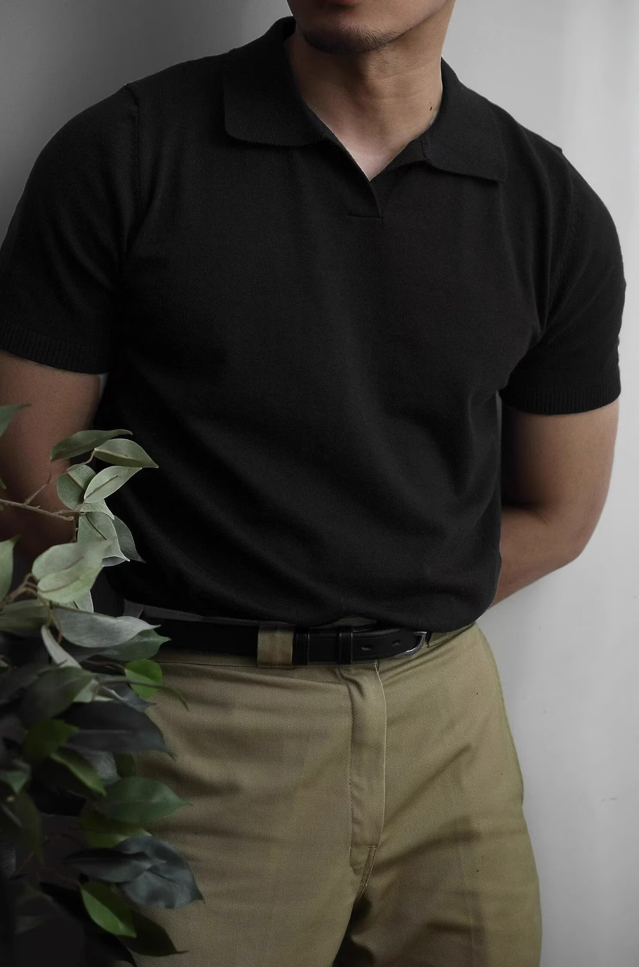 翻领商务polo男针织衫海鸥领t恤男休闲纯色修身美式男士夏季短袖