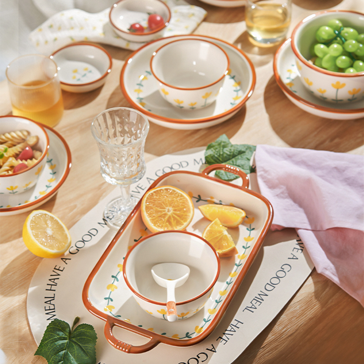 清新餐具碗碟套装家用陶瓷碗新款碗盘高颜值碗筷盘子碗具套装