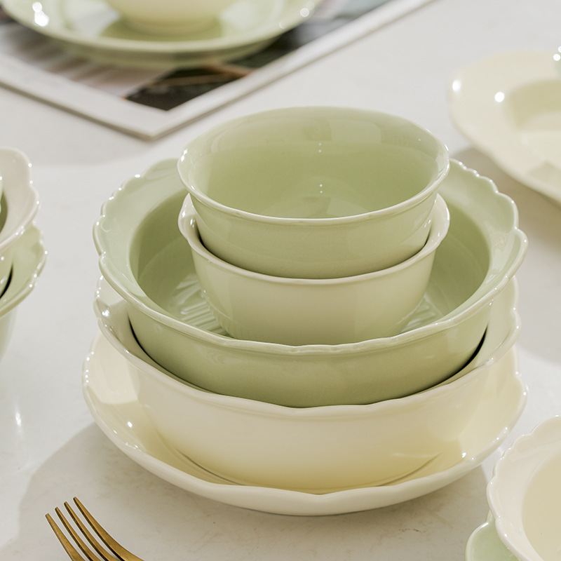 釉下奶油风餐具碗碟套装家用饭碗新款小清新高颜值吃饭碗盘子