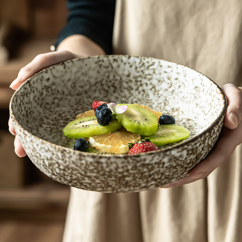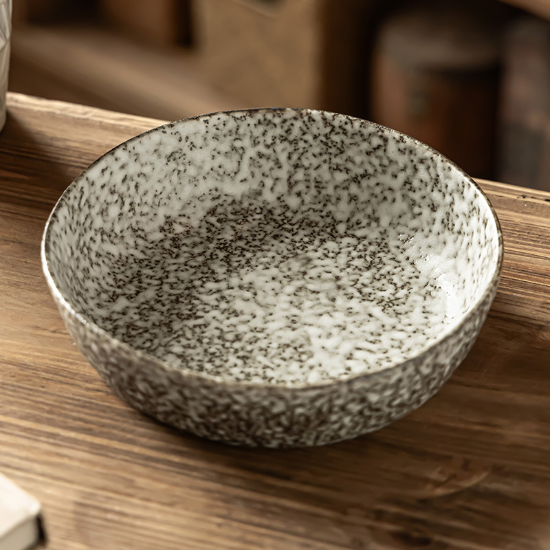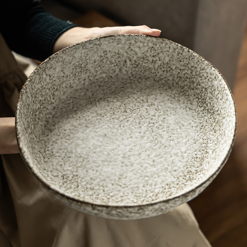 诧寂风石头纹碗盘家用日式陶瓷大碗圆形餐具碗创意沙拉碗菜碗餐盘