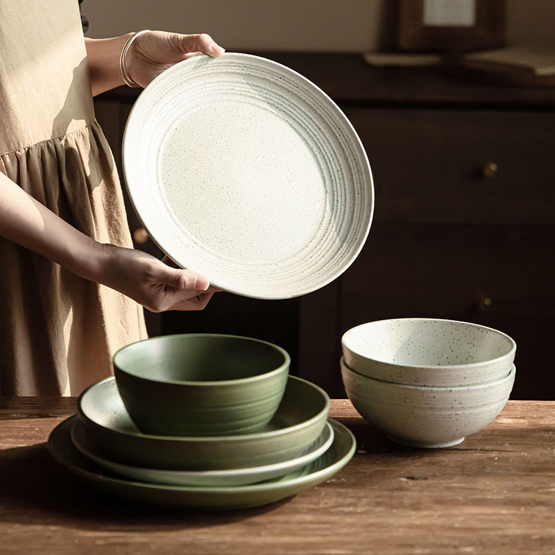 时光印记系列餐具复古风螺纹大小菜盘西餐盘陶瓷沙拉碗家用碗盘子
