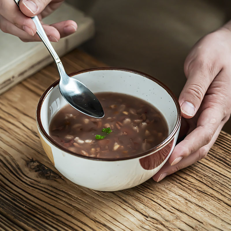 创意手绘陶瓷碗创意斑点家居日用早餐粥汤碗一人食面碗圆形米饭碗
