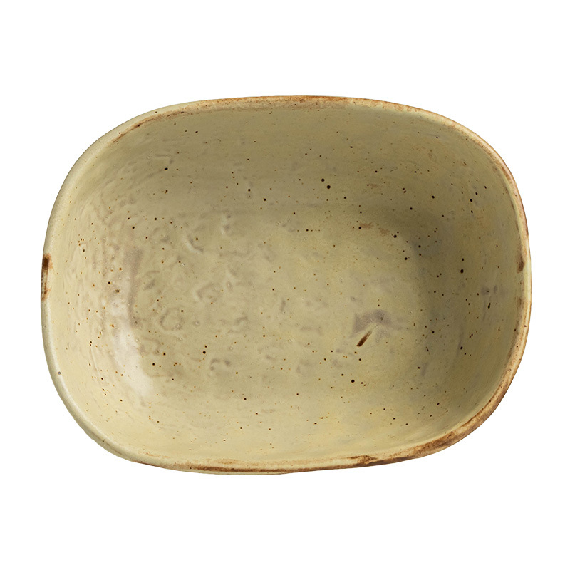 茶兮-粗陶锤纹碗米黄7.2英寸
