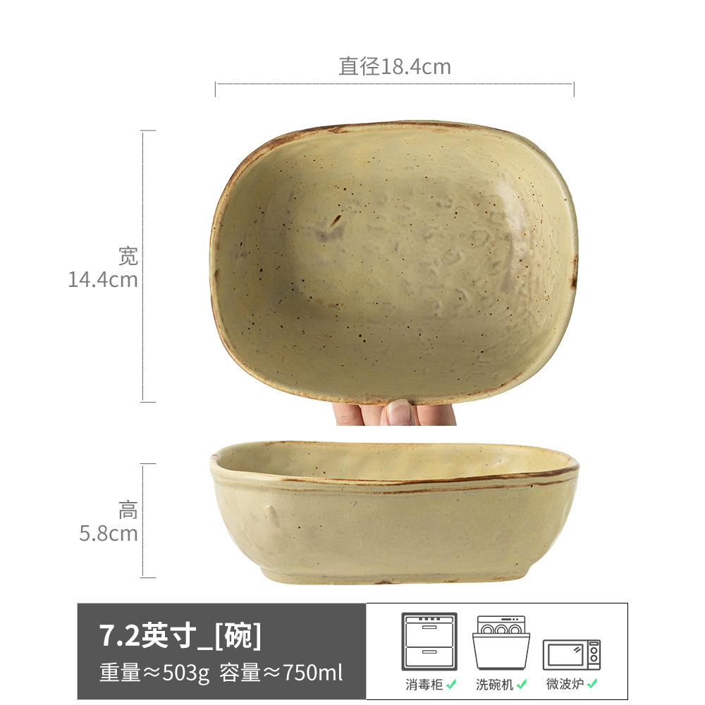窑变陶瓷碗批发复古风餐具浅碗沙拉碗家用菜碗大碗日式面碗厚底碗