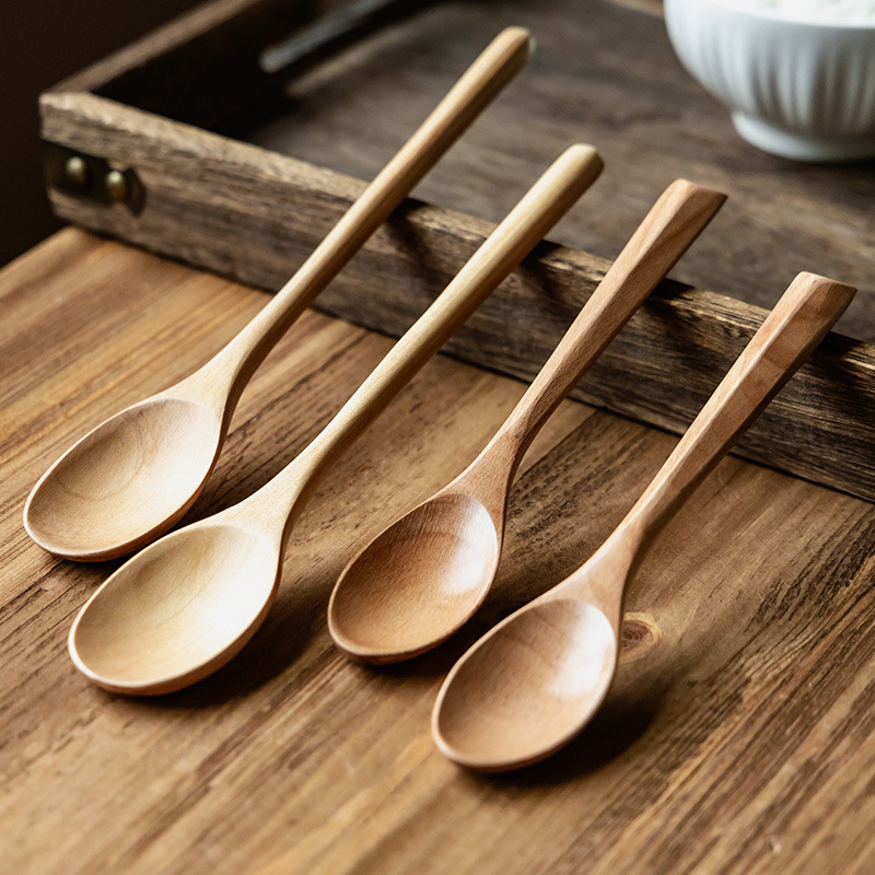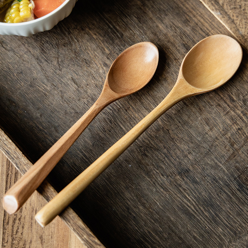 日式复古长柄木勺高级简约吃饭勺料理勺搅拌勺家用喝汤勺餐具勺子