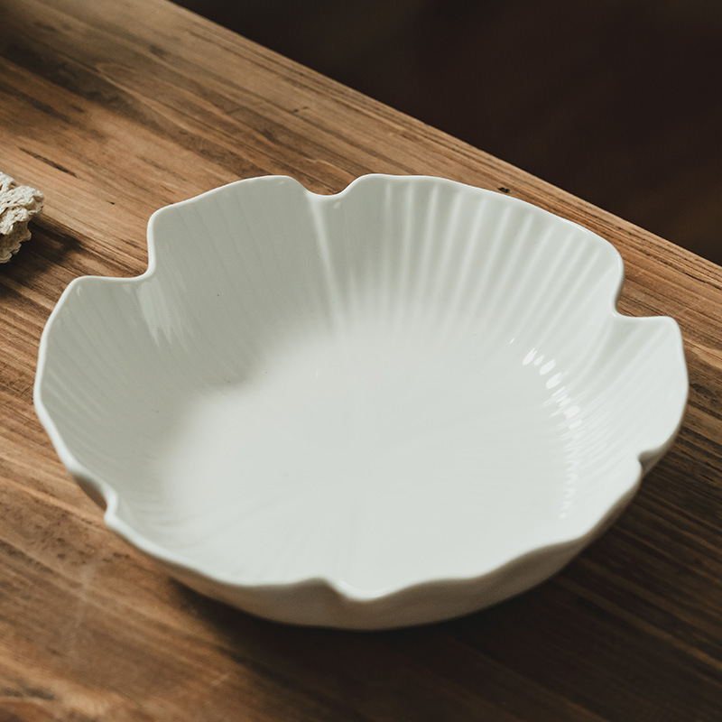 纯色花边深盘创意花形盘子家用菜盘沙拉盘餐厅餐具盘精致餐盘