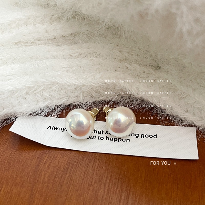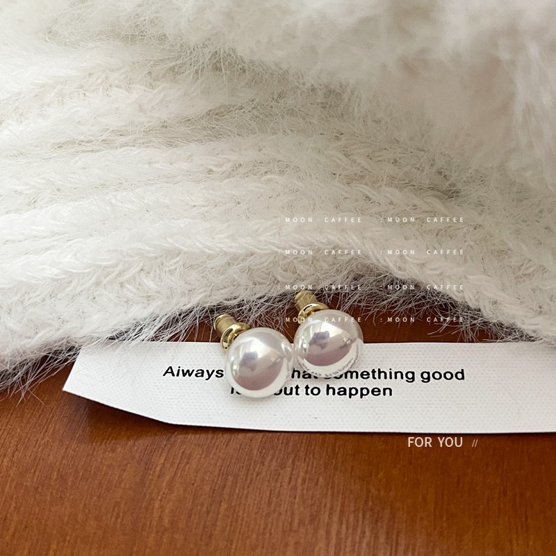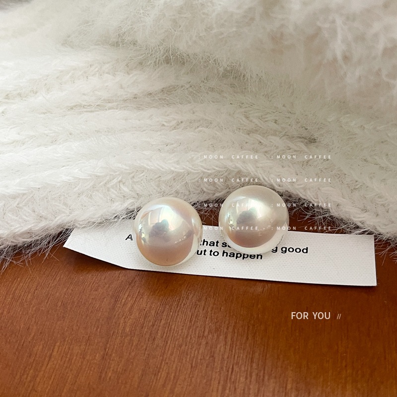 925银针圆形馒头马贝珍珠耳钉女法式复古气质百搭轻奢耳环ins耳饰
