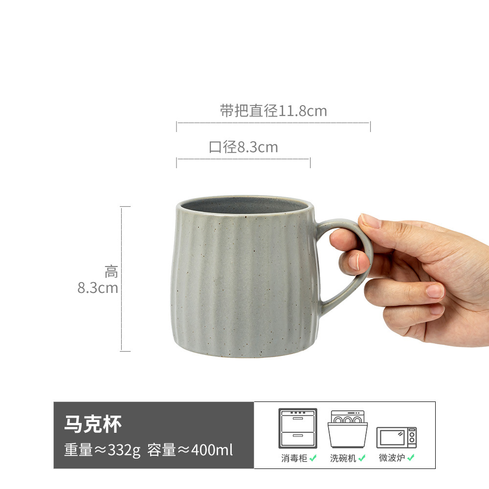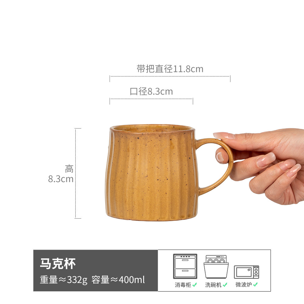 陶瓷马克杯大容量复古竖纹杯子日式早餐杯家用水杯餐厅咖啡杯