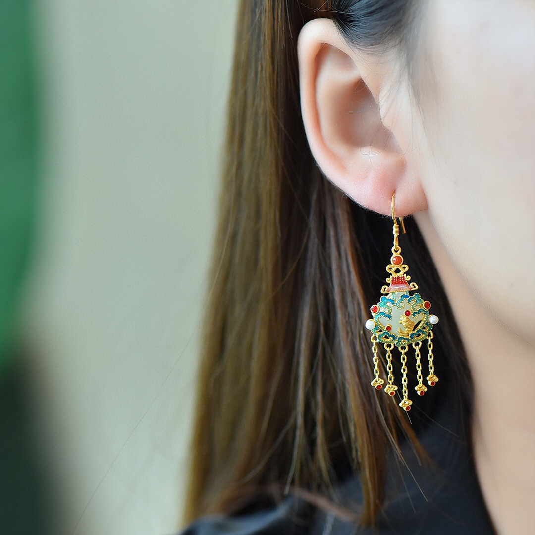 仿和田玉耳环古风耳饰古法鎏金珐琅耳环中国风宫廷汉服民族风饰品