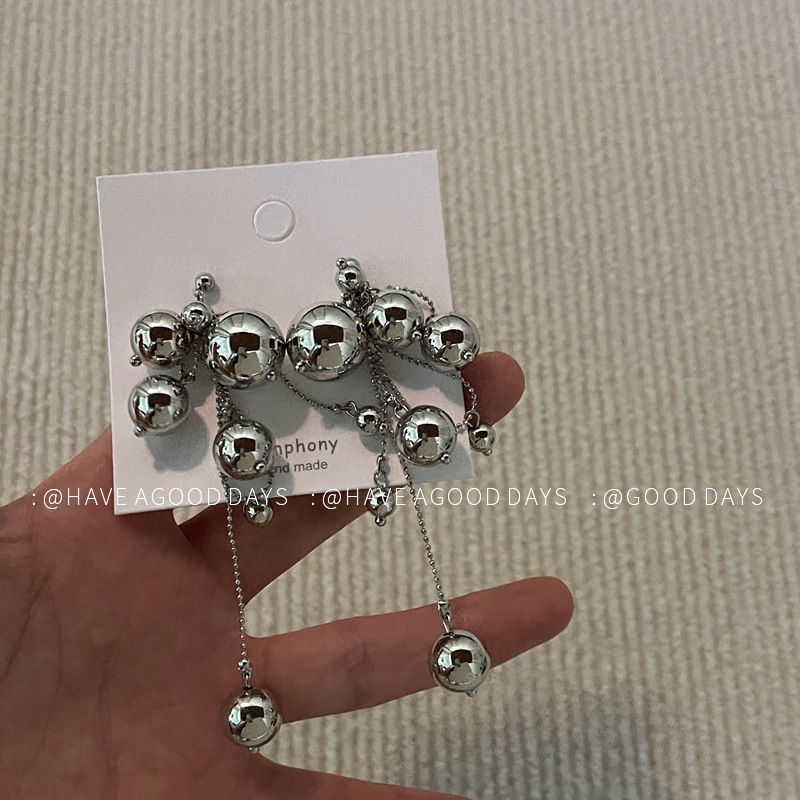 个性圆球流苏耳环金属感925银针高级感耳饰气质小众设计感轻奢风~