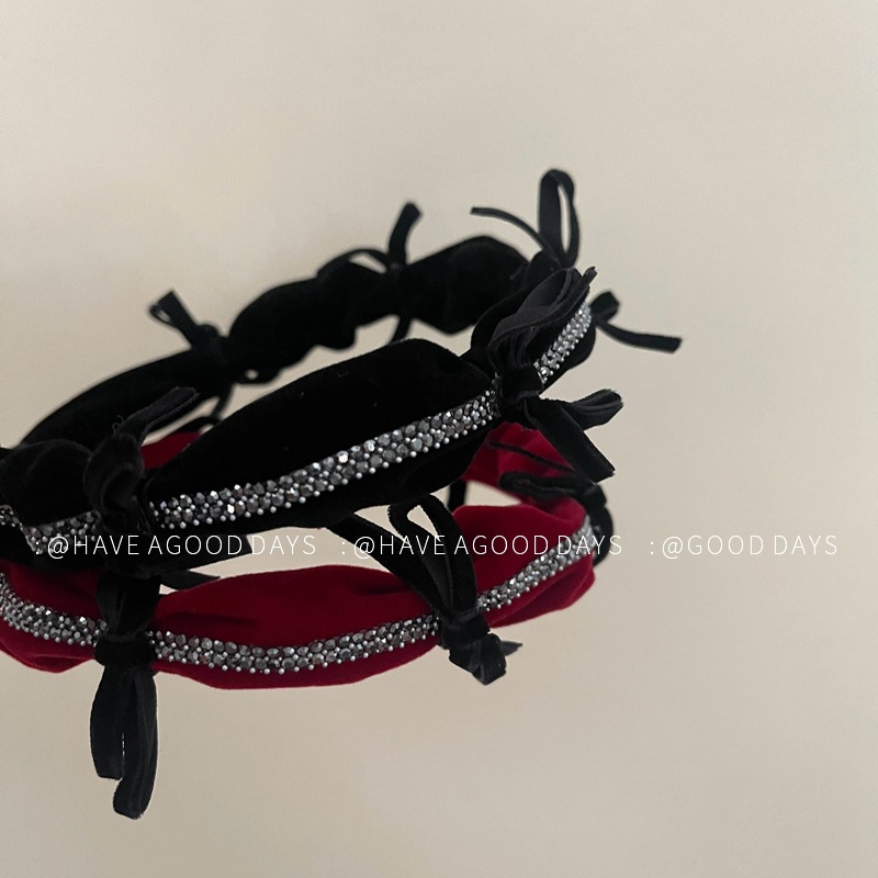 甜美丝绒蝴蝶结满钻发箍头箍小众设计感个性发饰高颅顶头饰气质女