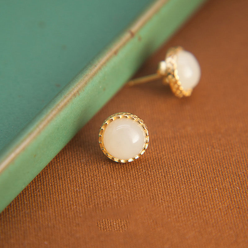 s925纯银抖加镶嵌和田精玉耳钩百搭时尚小清新碧玉女士简约耳饰