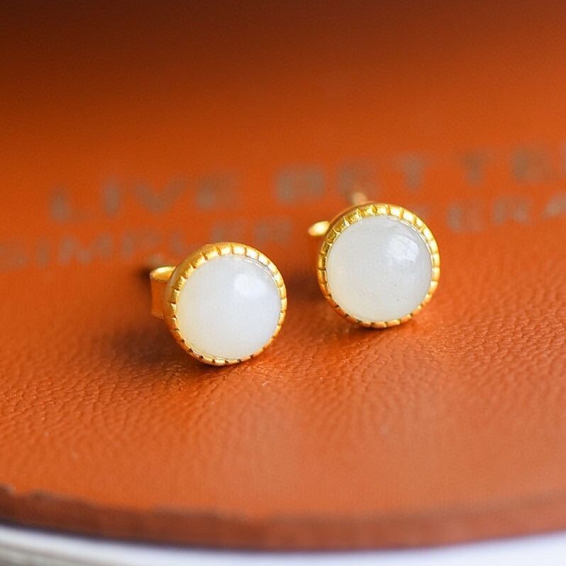 气质款和田白玉耳钉天然玉石s925纯银镶嵌耳钉耳坠环送女友送老婆