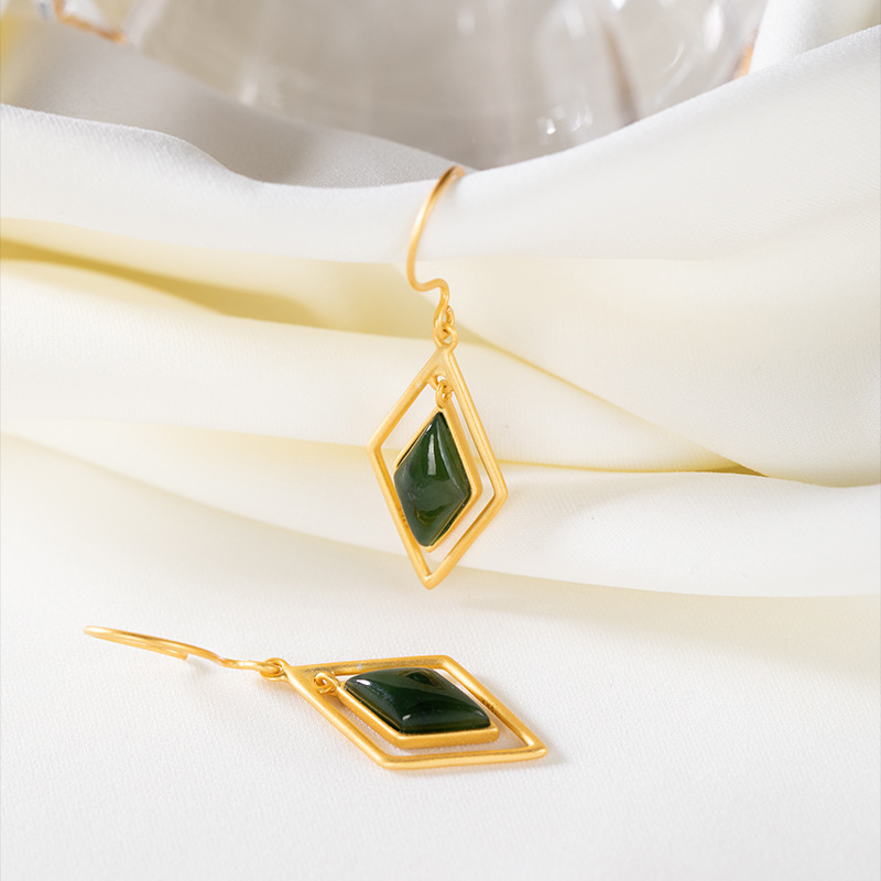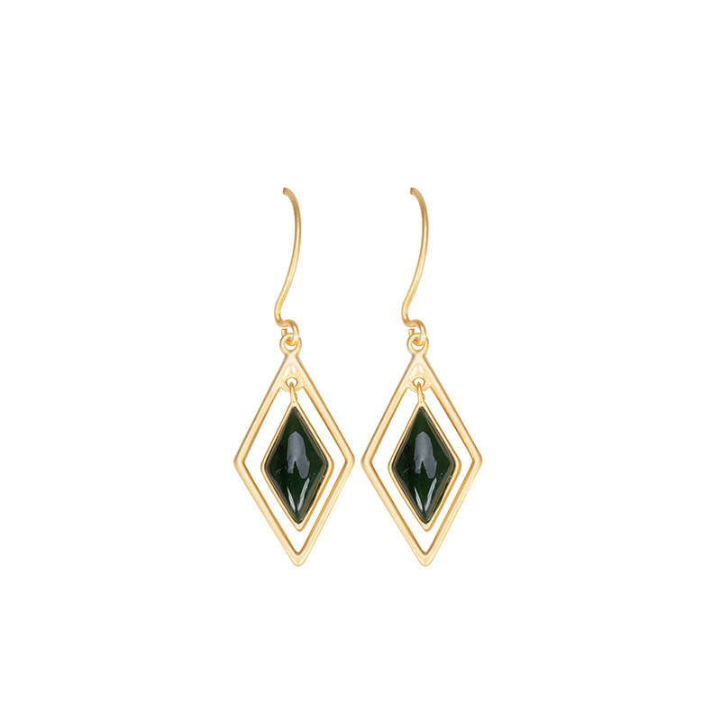 简约几何和田碧玉镀金耳坠小清新个性气质宫廷设计耳钉百搭女士