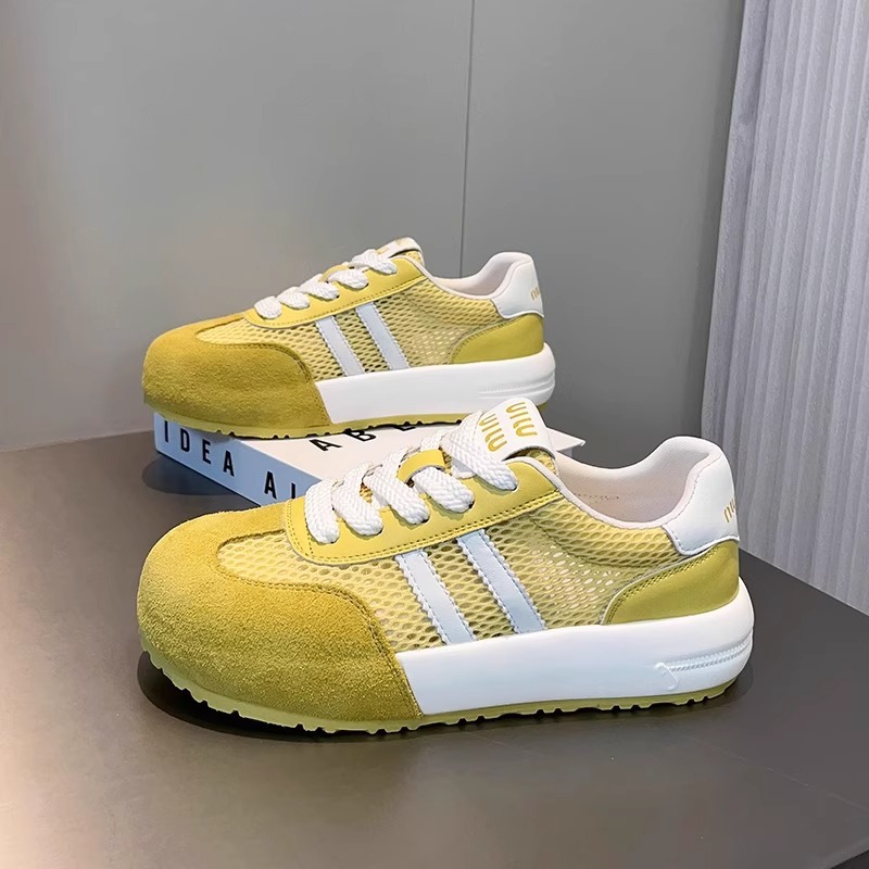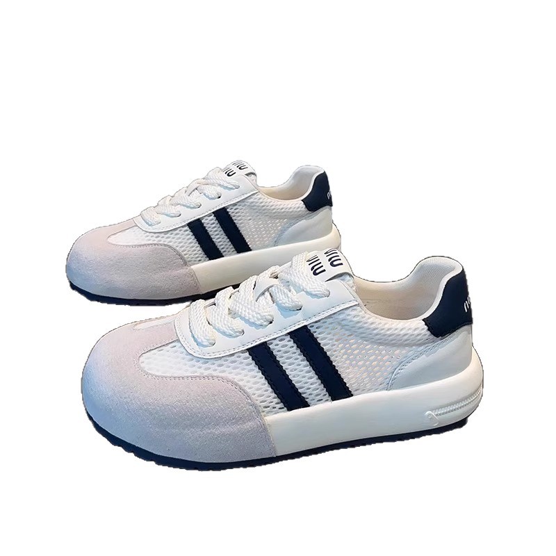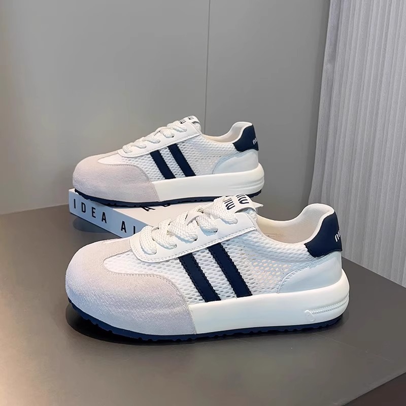 The new thick-soled round-toe breathable white fashionable casual sports sneakers with genuine leather mesh surface for the Spring/Summer of 2025