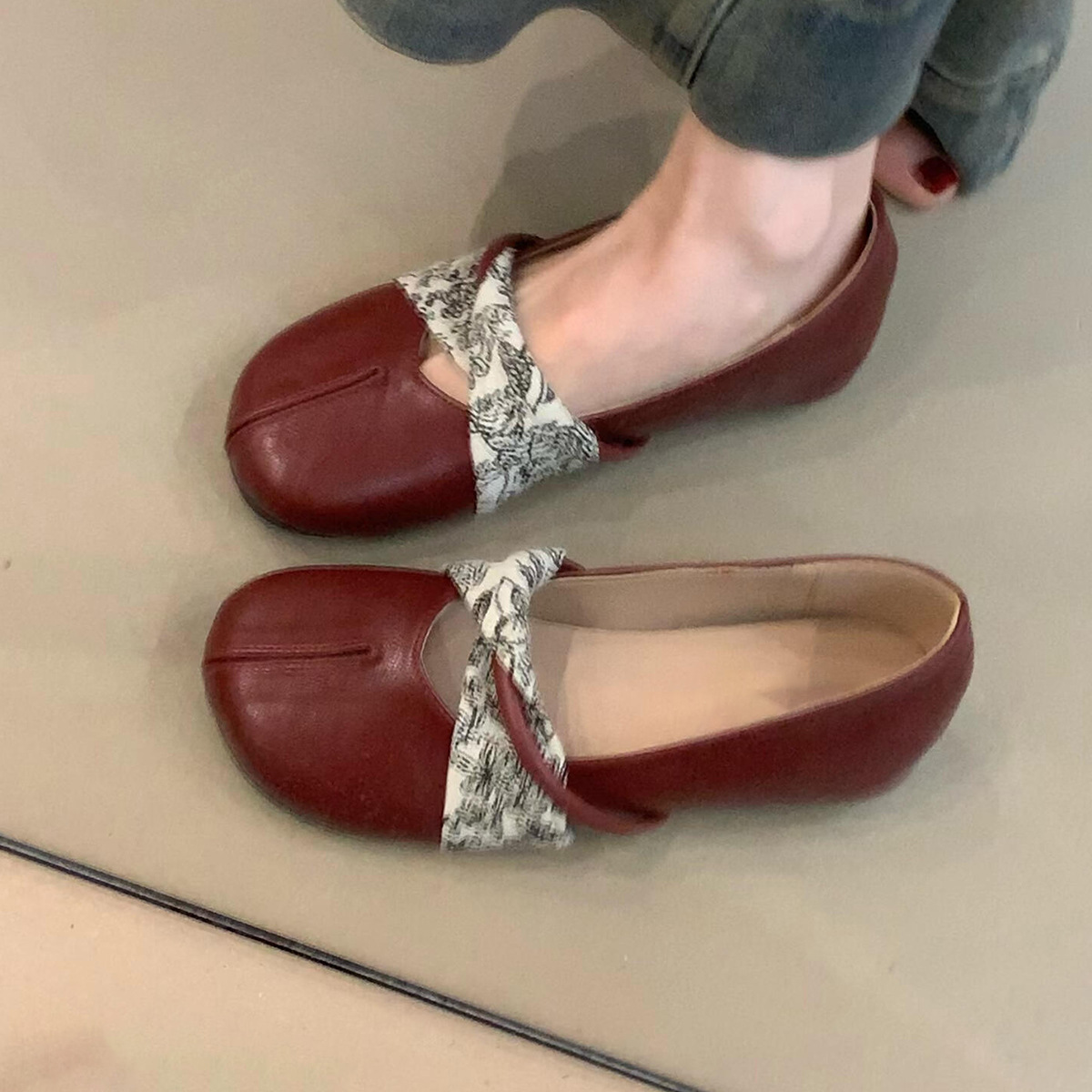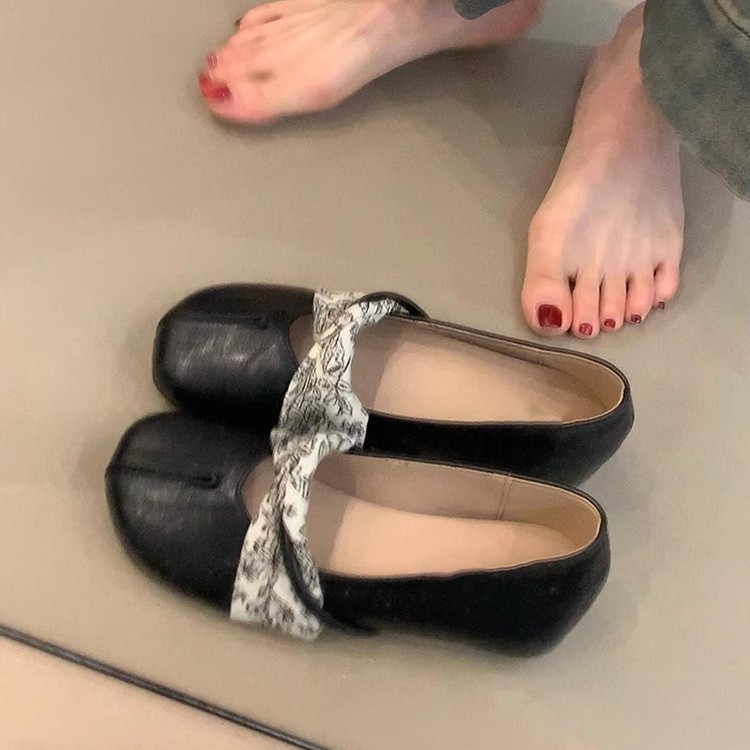 羊皮版~新中式芭蕾风圆头小单鞋女一脚蹬内增高浅口平底玛丽珍鞋