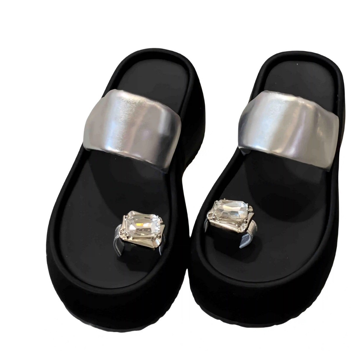 韩版水钻套趾拖鞋外穿2025夏季新款沙滩凉拖增高跛跟一字拖女凉鞋