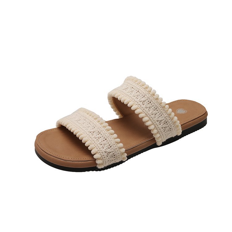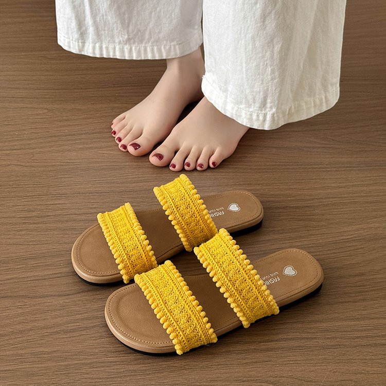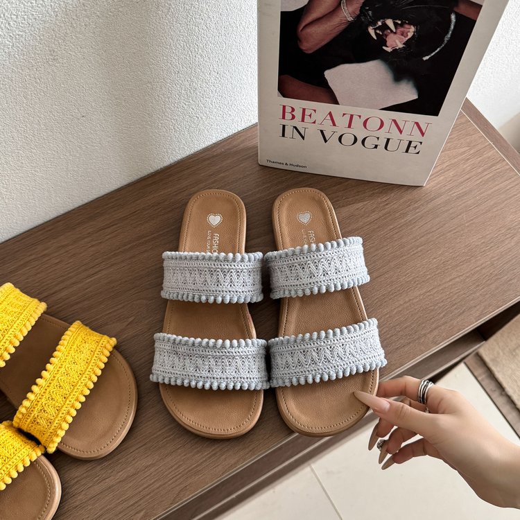 法式编织一字带拖鞋女2025夏季新款百搭外穿凉鞋沙滩鞋海边凉拖
