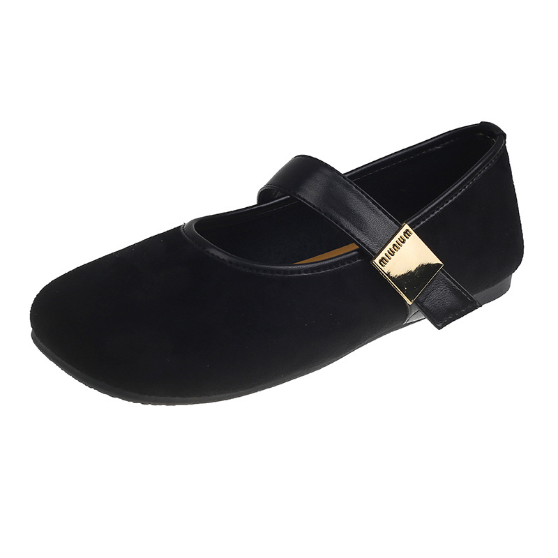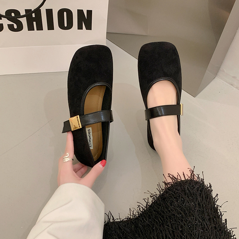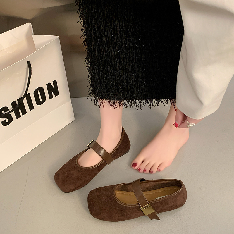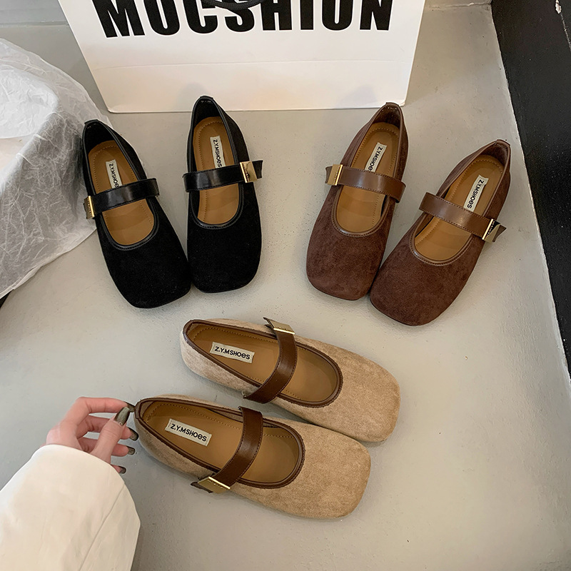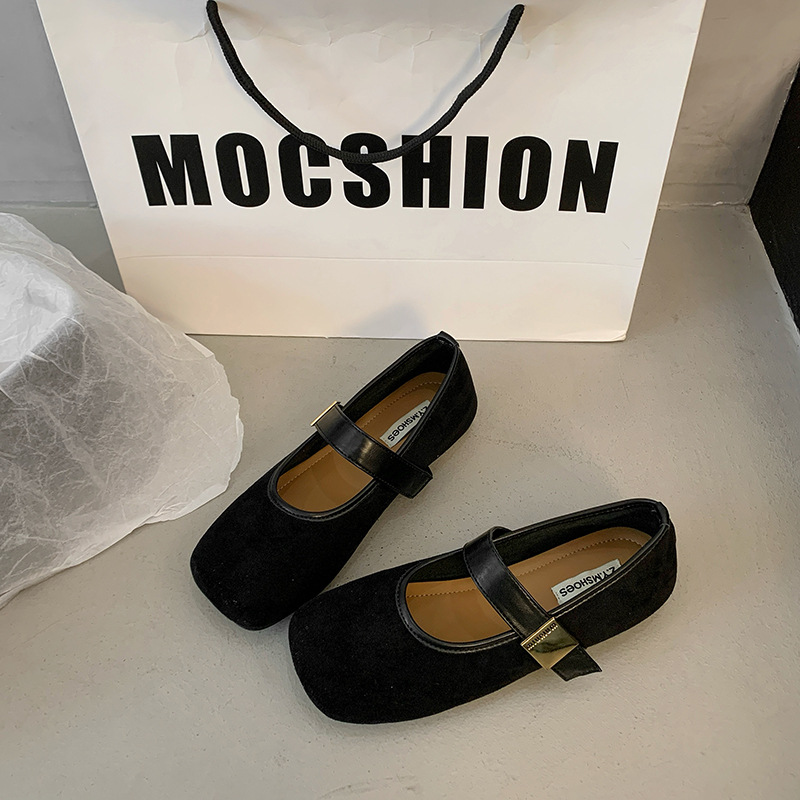 复古方头一字扣带绒面玛丽珍鞋女2025春夏新款小众休闲平底单鞋