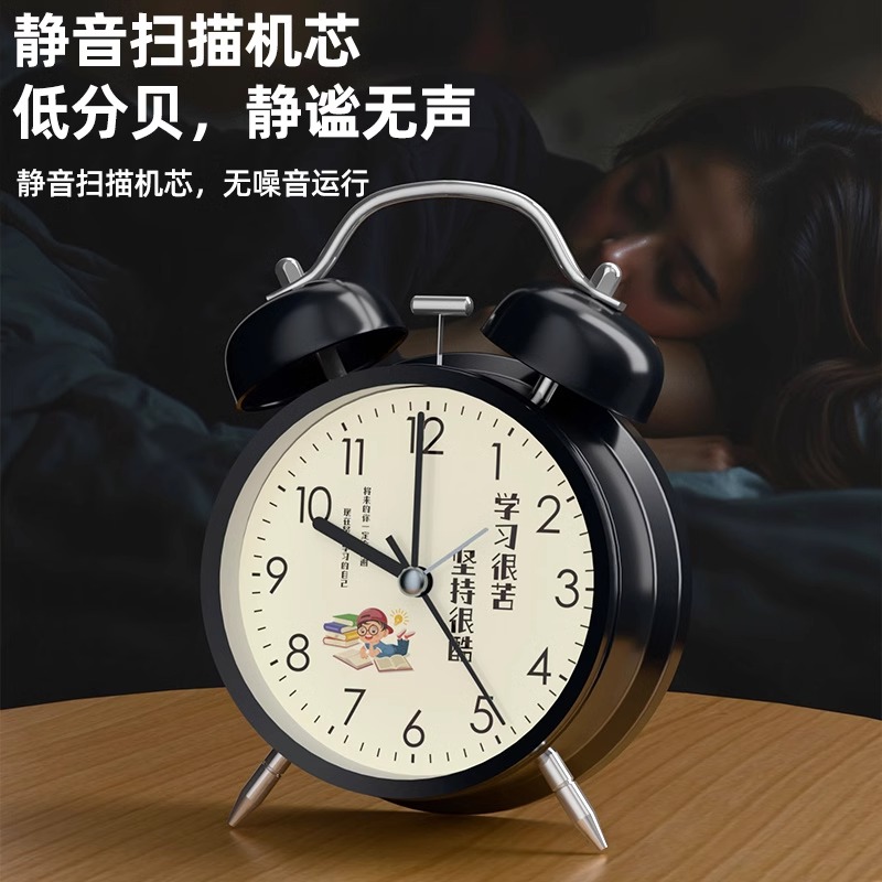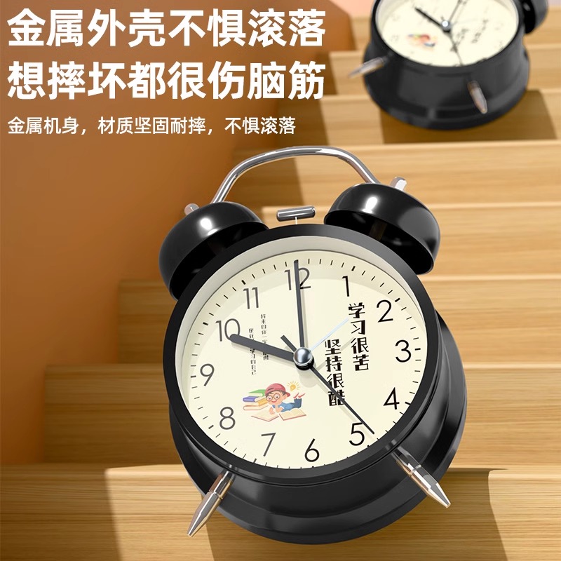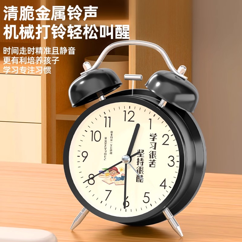 - 电池款4.5寸★【学习很苦-男】超大铃声/走时静音/带夜灯-黑