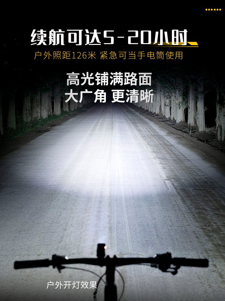 自行车夜骑前灯强光防水手电筒儿童山地公路夜间照明骑行装备