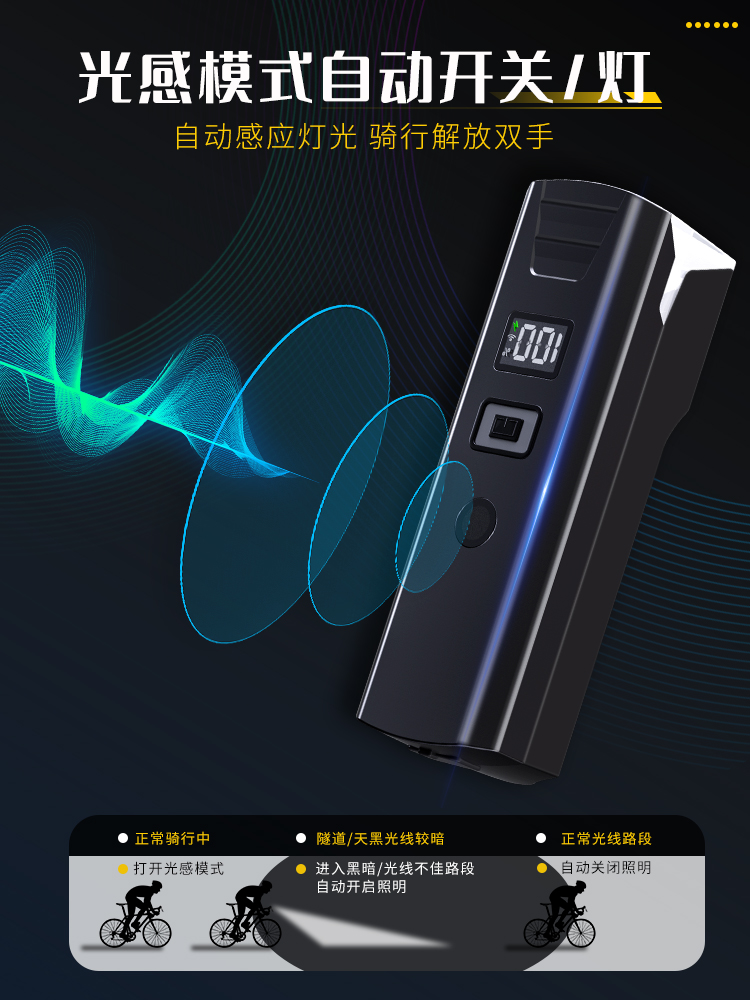 - 高配款 600流明前灯+Q10爆闪尾灯 续航5-20H 光感应 四档电显 智能快充