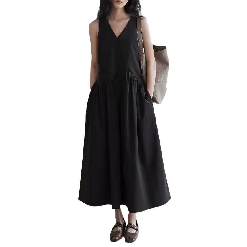 法式气质v领背心连衣裙女夏季新款高级黑色高腰无袖裙子
