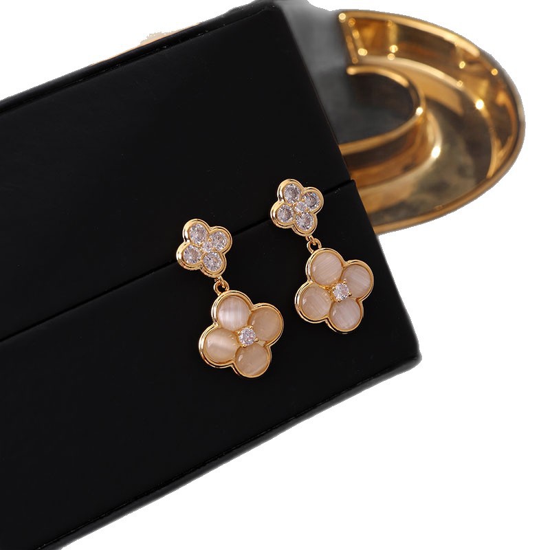 2025年新款时尚百搭猫眼石耳环女 四叶草耳坠轻奢镶锆饰品耳饰女
