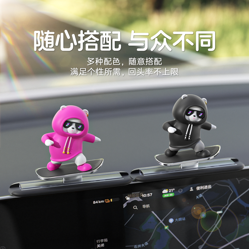 车载滑动滑板卡通摇摆小熊车用装饰品中控屏幕汽车车内新款小摆件