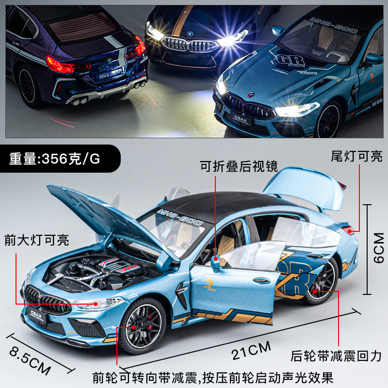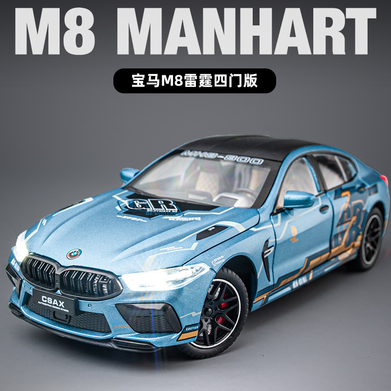 - 1/24宝马M8四门雷霆版 天蓝色涂装 可转向带减震