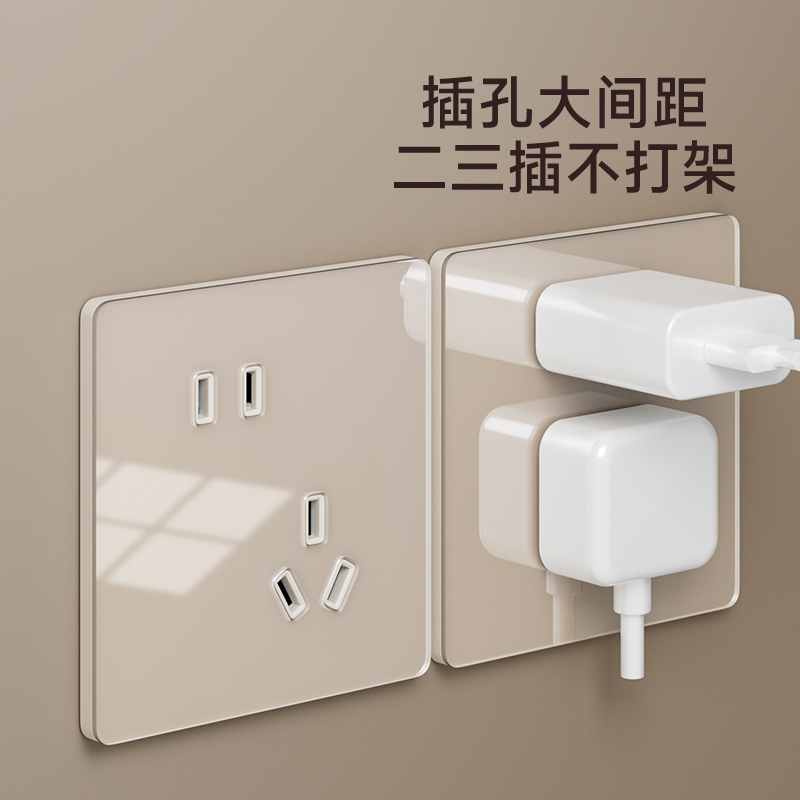 超薄钢化玻璃开关插座面板16a奶油风米白暖色5五孔带开关