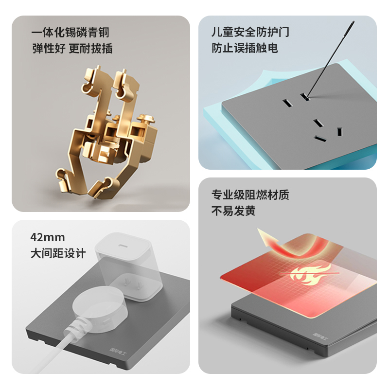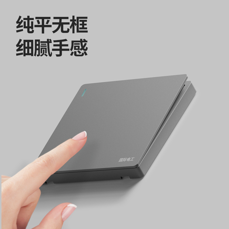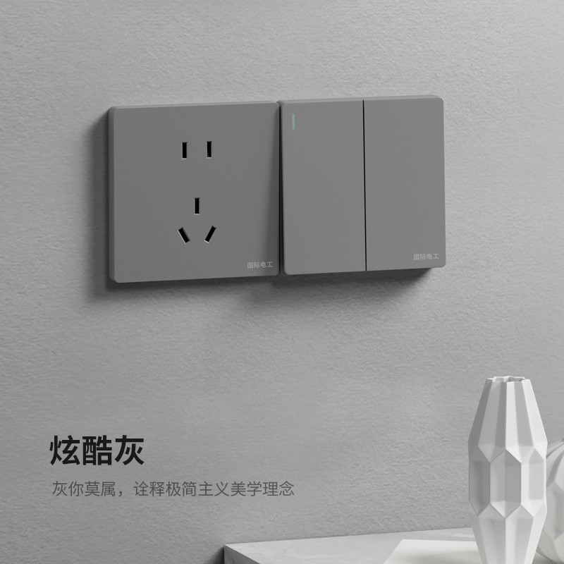 86型暗装大板灰色家用多孔墙壁电源一开五孔开关插座面板