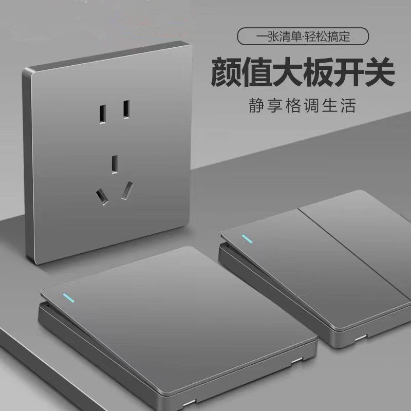 86型暗装开关插座家用灰色一开五孔usb双控开关墙壁面板