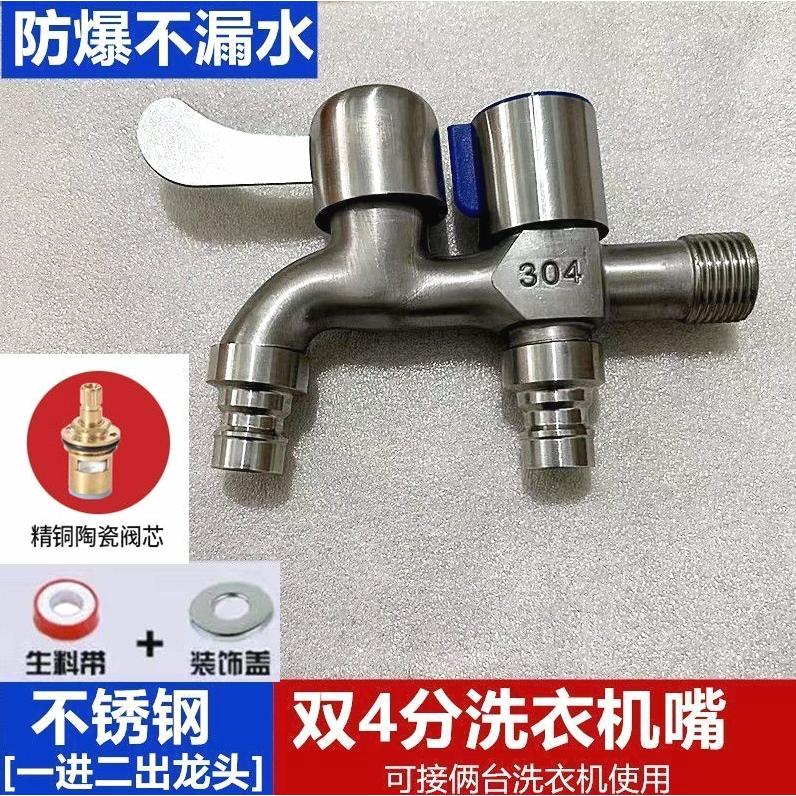 全铜双头水龙头二出双控4分洗衣机304不锈钢水龙头一拖二
