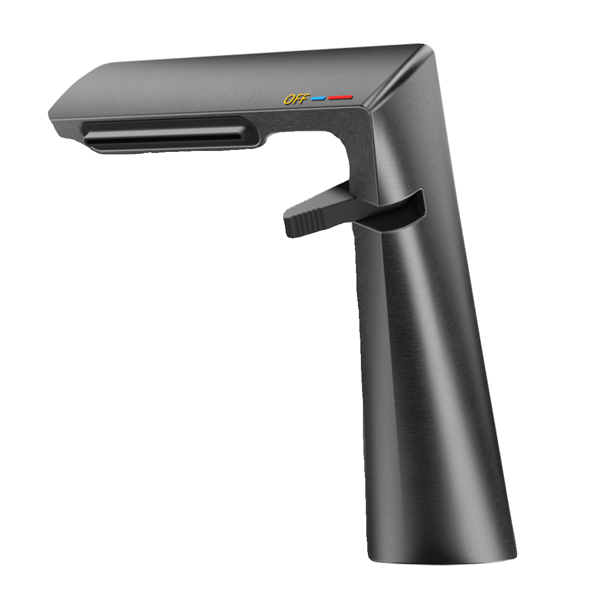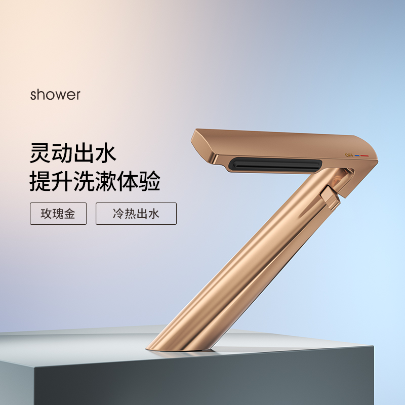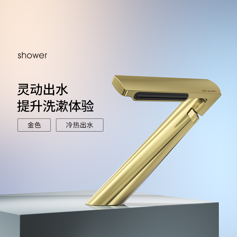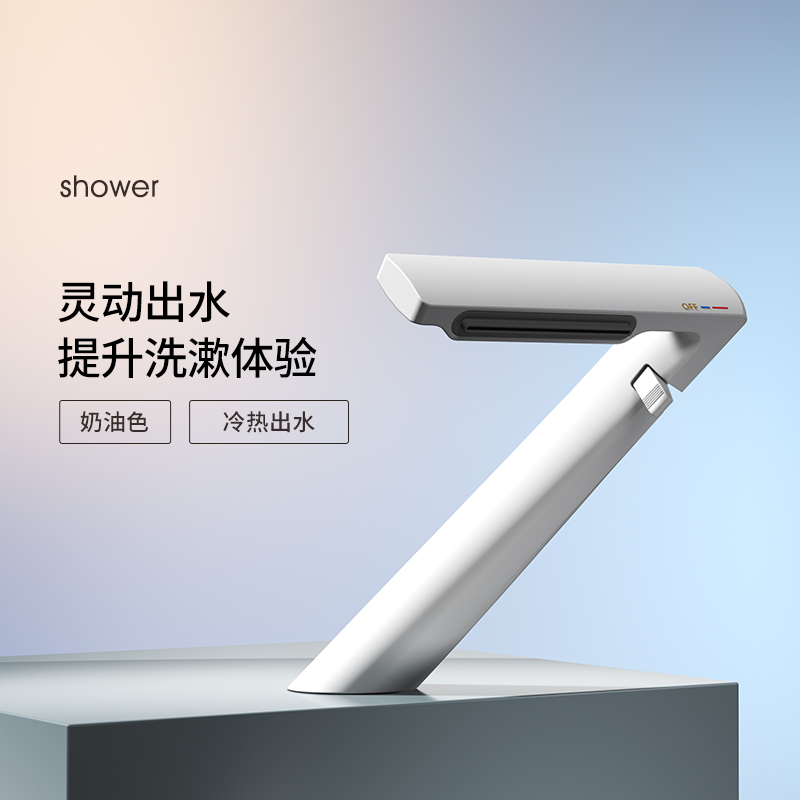 艺术创意面盆水龙头冷热双用枪灰色瀑布式台下盆家用白色全铜洗手