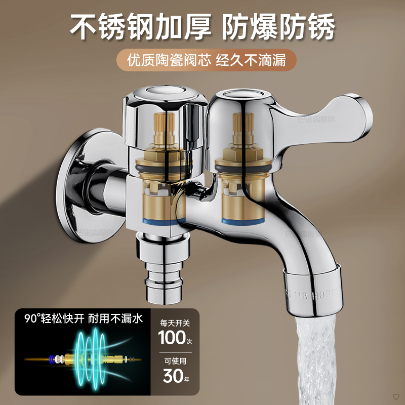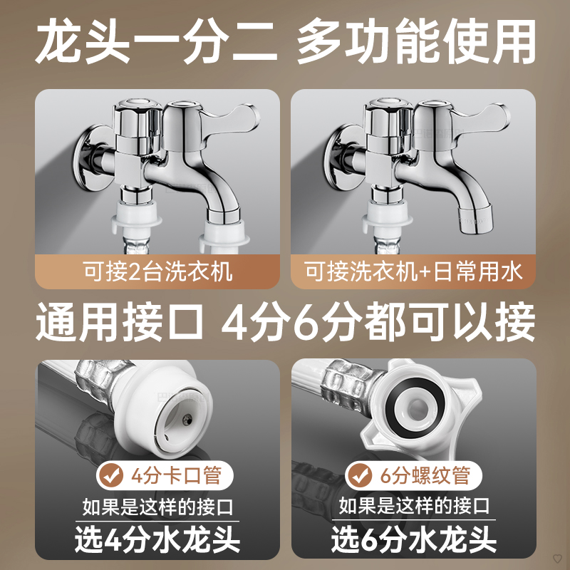304不锈钢洗衣机水龙头正品一进二出双头双控出水一分二接头