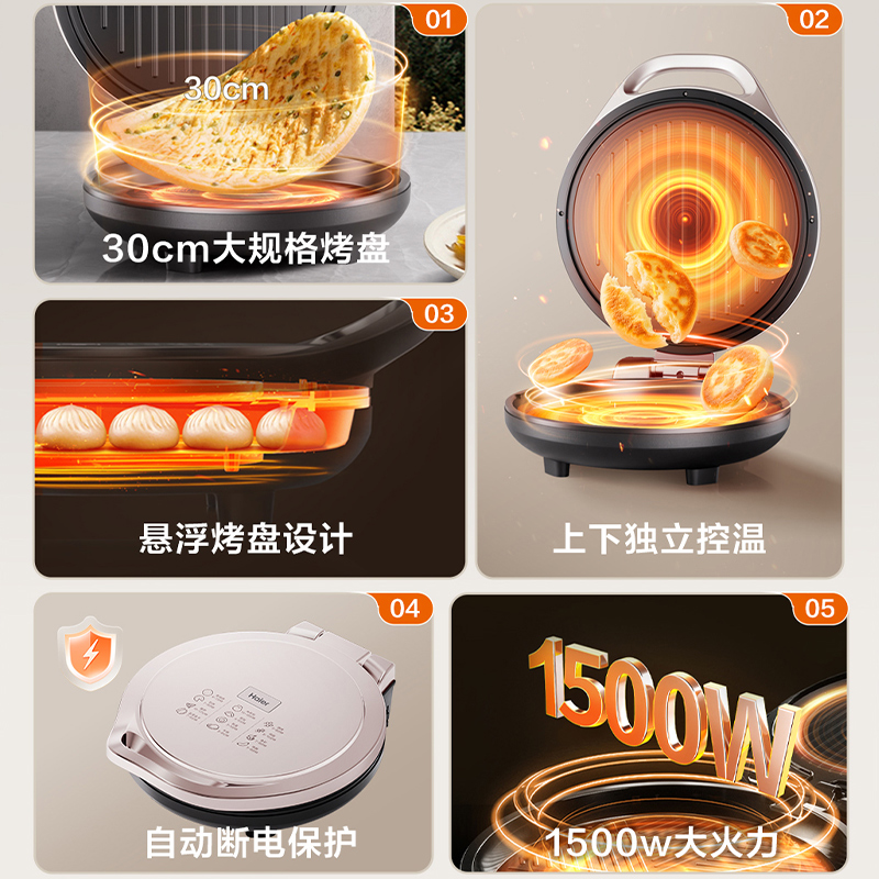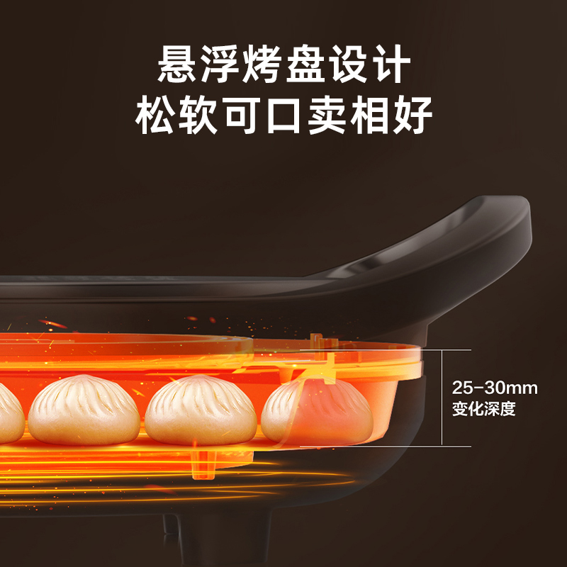 悬浮式电饼铛【双面独立控温+食品级 不沾涂层+1500W大火力】