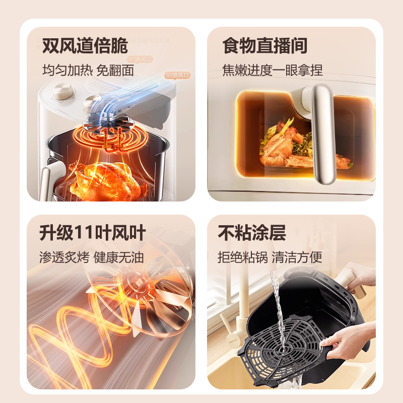 奶白色5.5L【双风通免翻面】+50张硅油烤纸