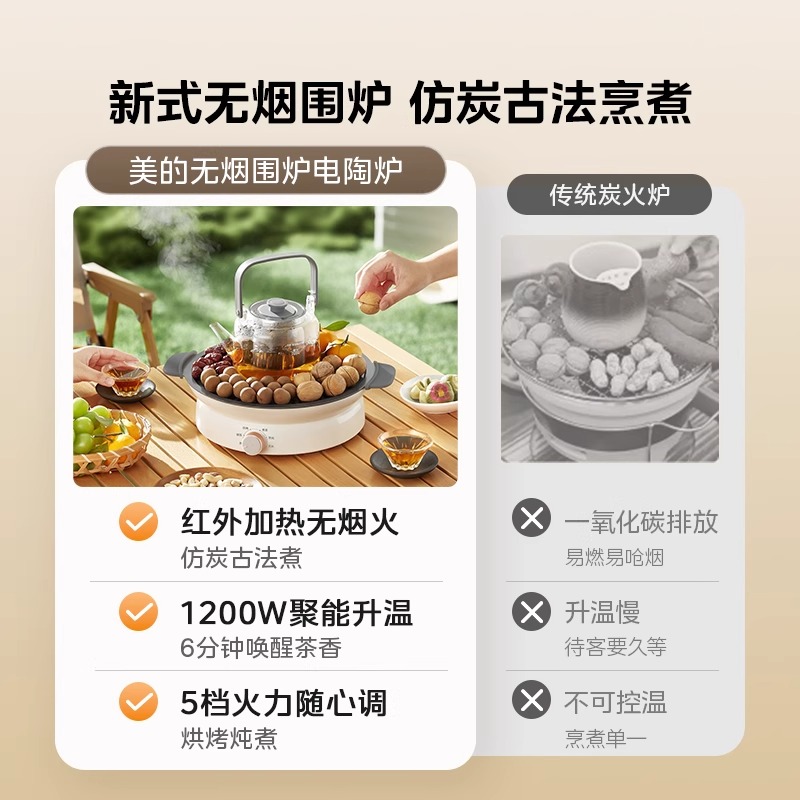 美的电陶炉家用电磁炉迷你小茶炉电热炉泡茶不挑锅围炉煮茶光波炉